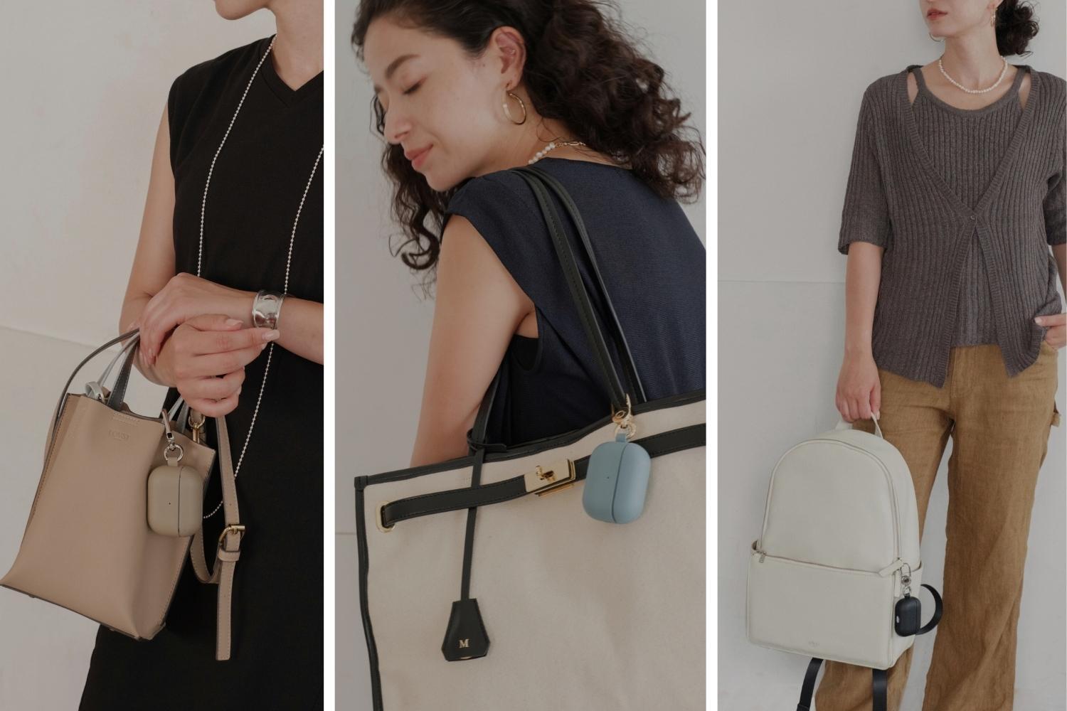 Beige × Silverの配色デザインが可愛い「Apple Bicolor Mini Tote Bag」に、チャコールグレーのシンプルなワンピースを合わせてみました!