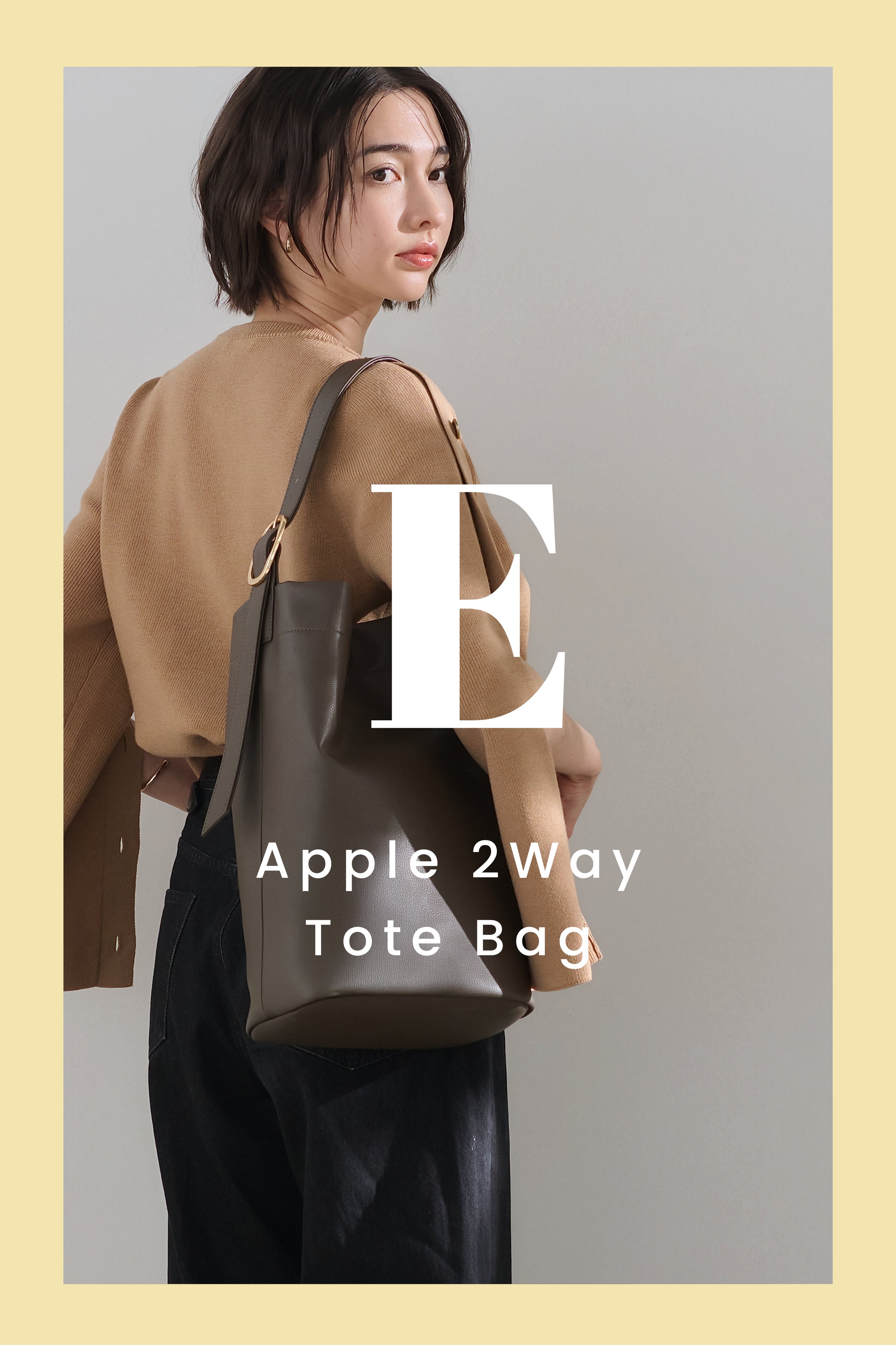 ボタンの留め方次第で2通りのシルエットが楽しめる「Apple 2Way Tote Bag」。おしゃれな縦型のデザインは、ON/OFF問わずあらゆるシーンでお使いいただけます。