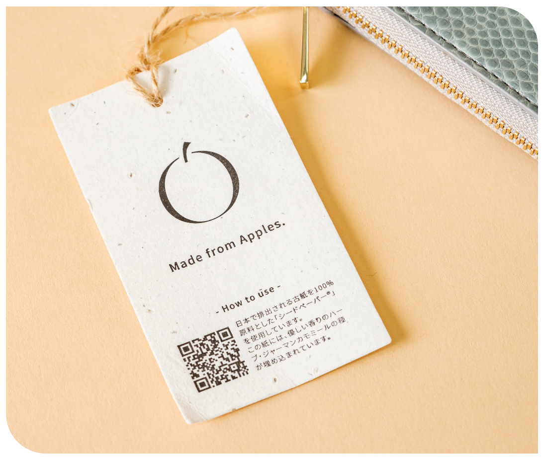 商品ダグには、紙ゴミとなった古紙を再生し、さまざまな花の種を漉きこんだ、古紙100%の環境にやさしいリサイクルペーパーを採用しています。(在庫状況により「森林認証紙」のタグを使用するともございます)ひと晩水につけて土に埋めると、数日で発芽し、やがてお花を咲かせます。シードペーパーは1枚1枚手漉きで、自然乾燥でつくられています。