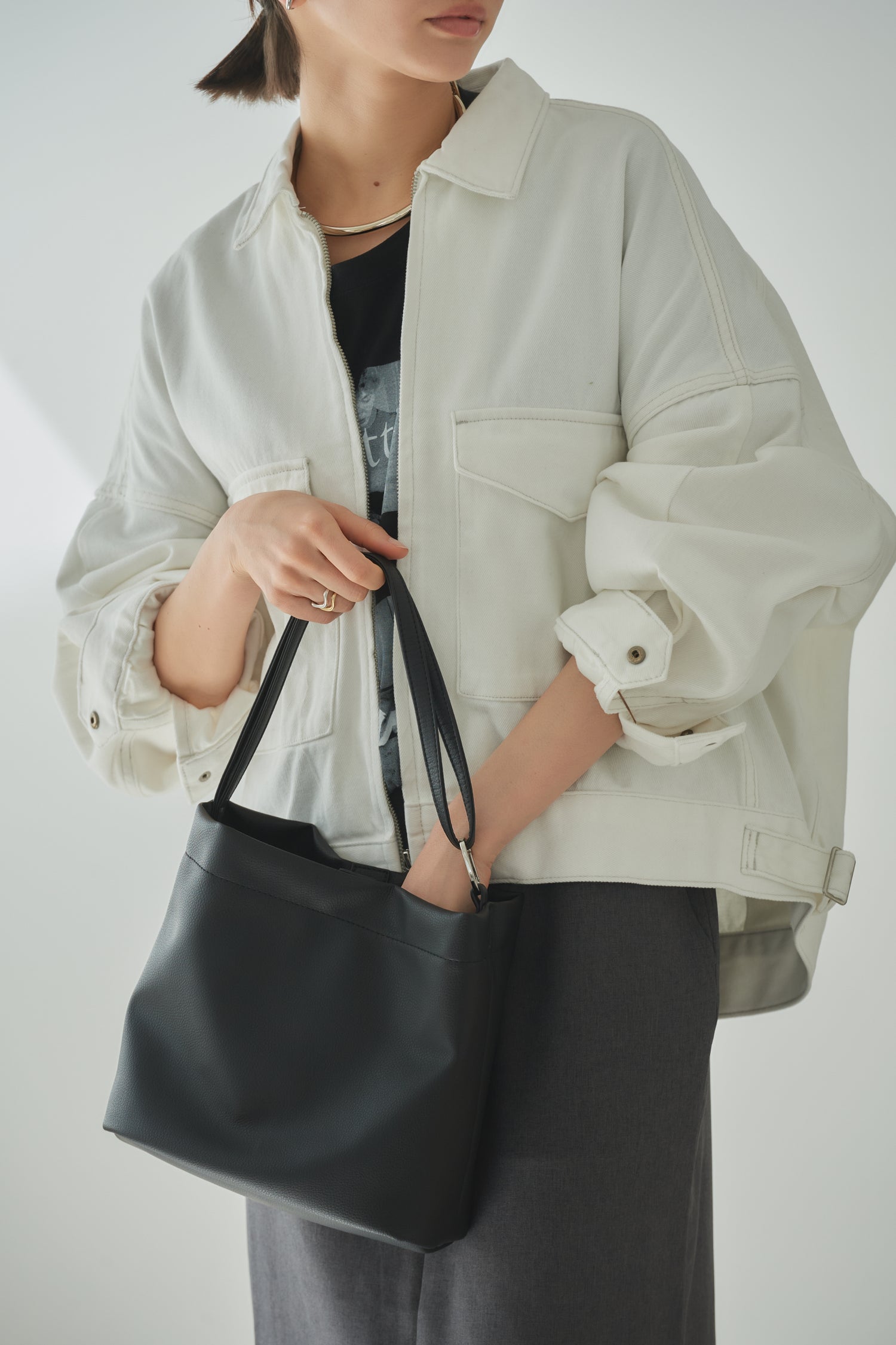ストラップの通し方を変えるだけで2Wayのシルエットでお楽しみいただけます。