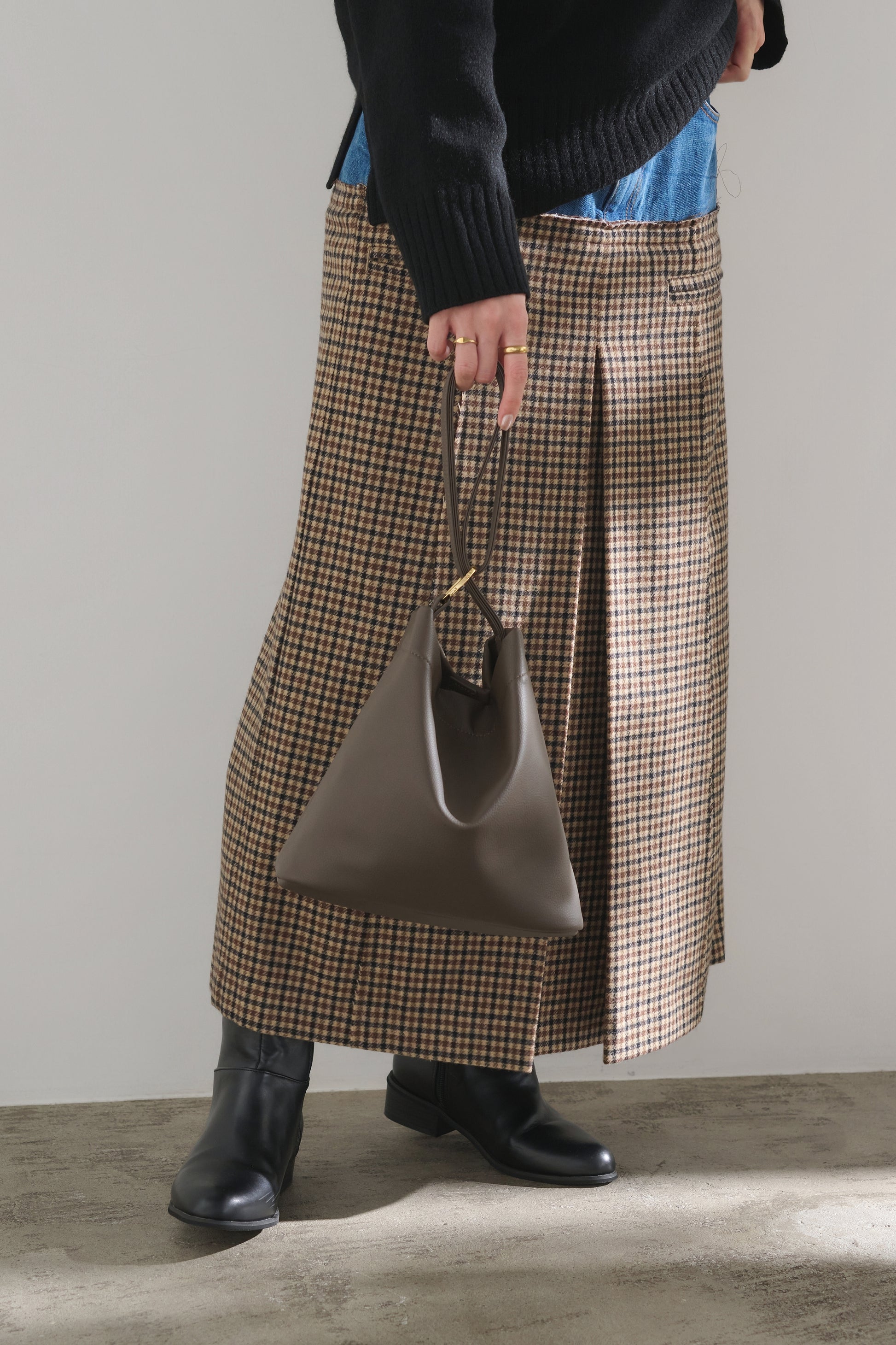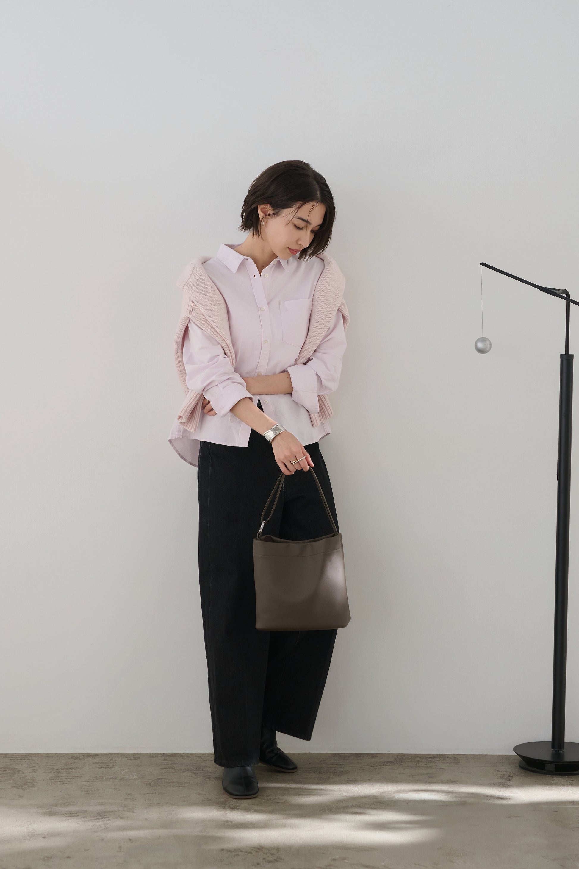 ・ストラップの通し方次第で、シンプルなショルダーバッグと巾着型バッグ、2つのシルエットを楽しめる