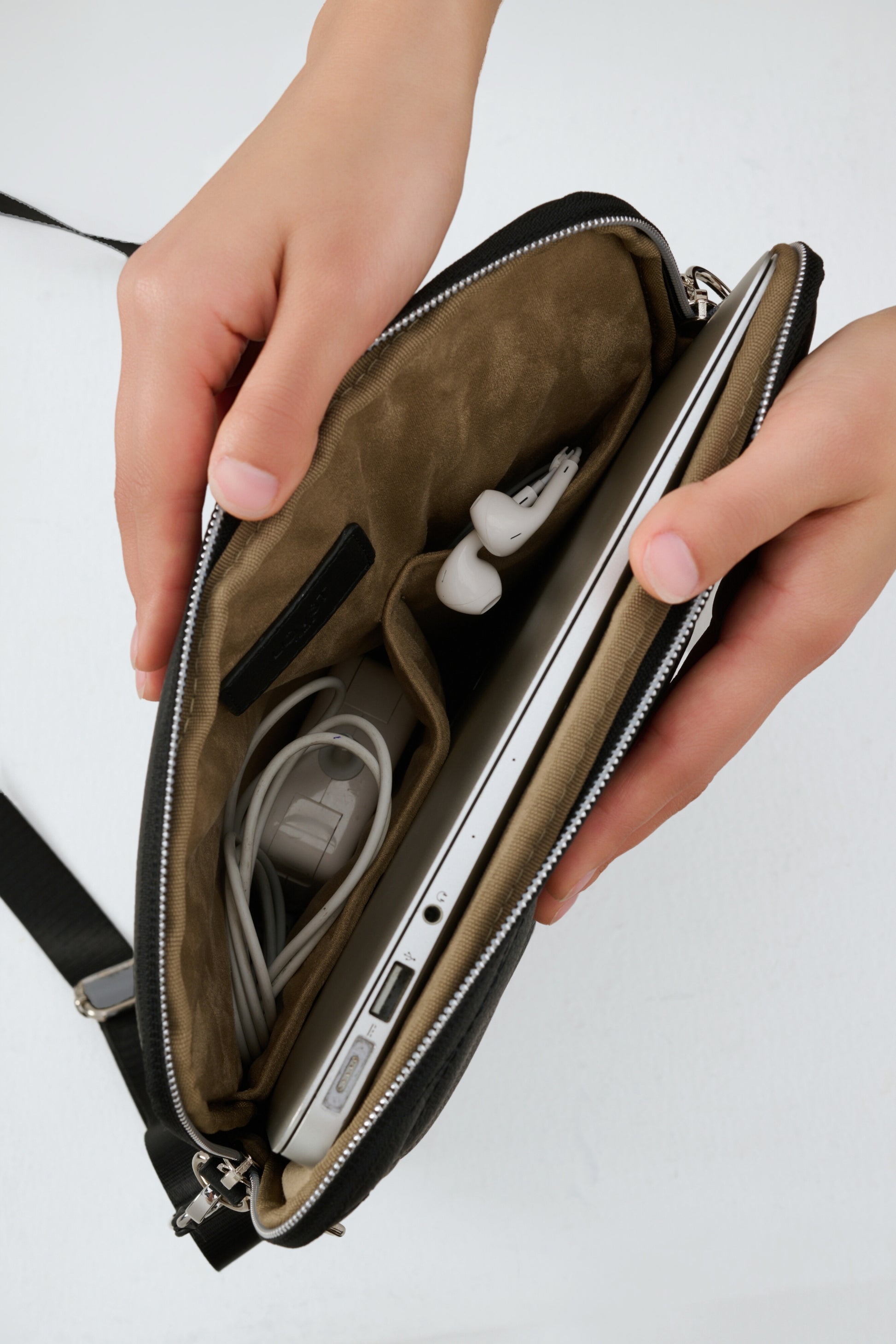 本体には14インチ* までのノートパソコンが収納可能。持ち歩きが煩わしく感じてしまいがちなパソコンを、スマートに持ち運ぶことが可能です。