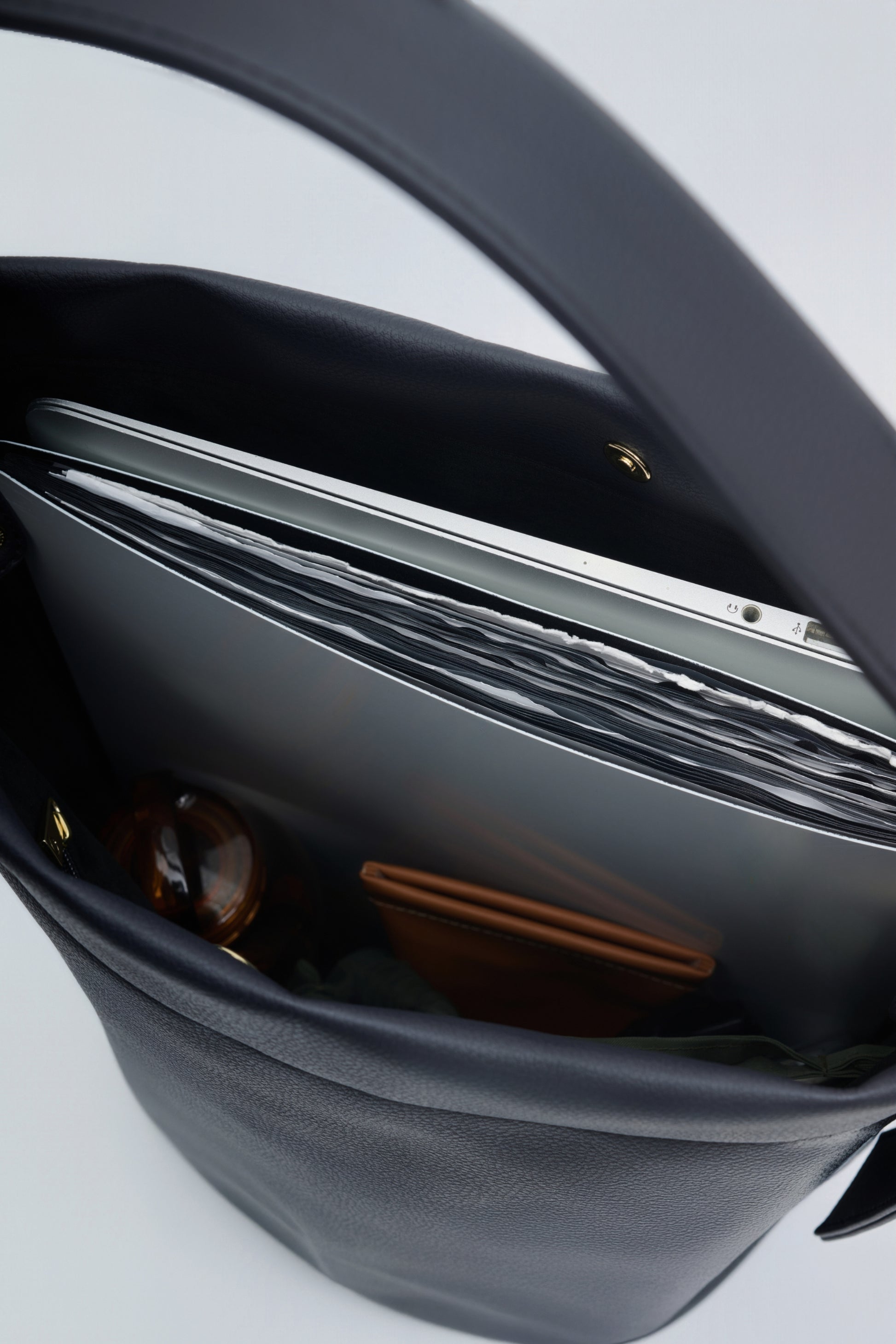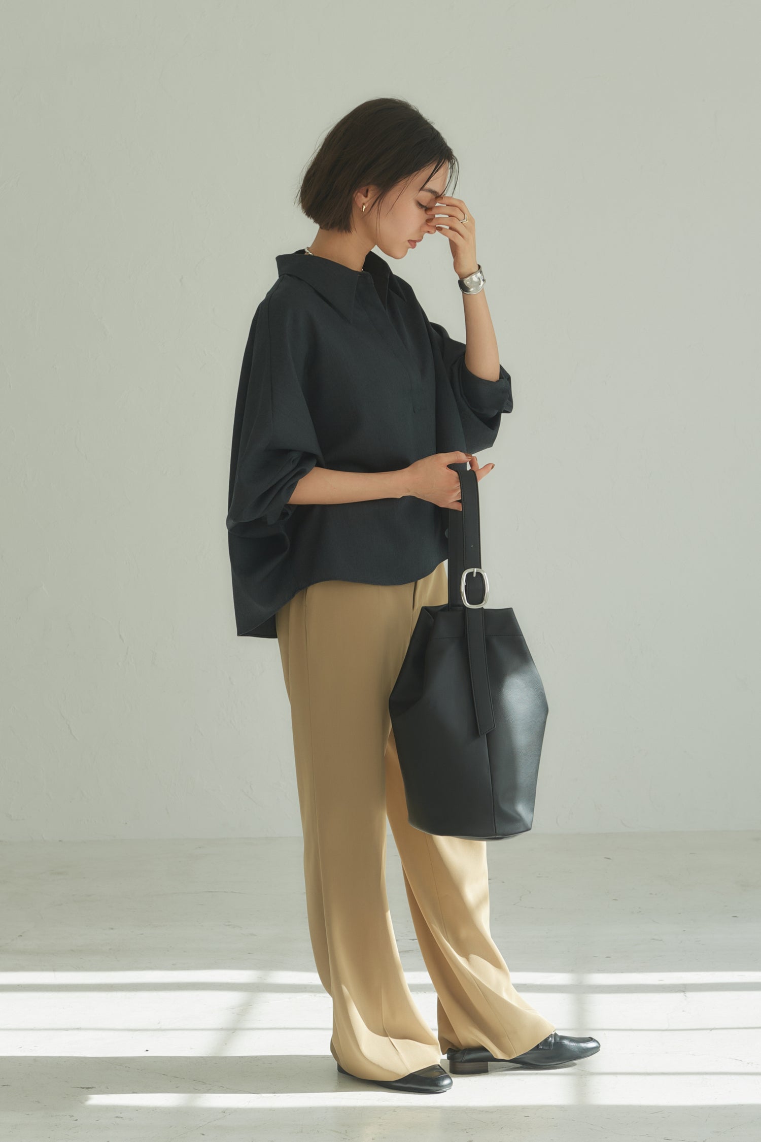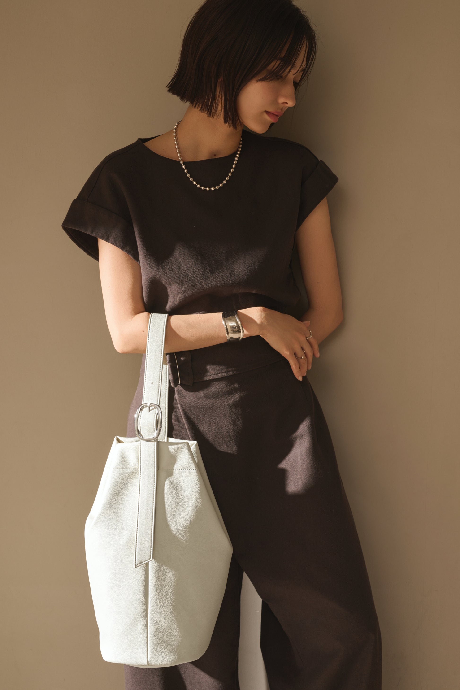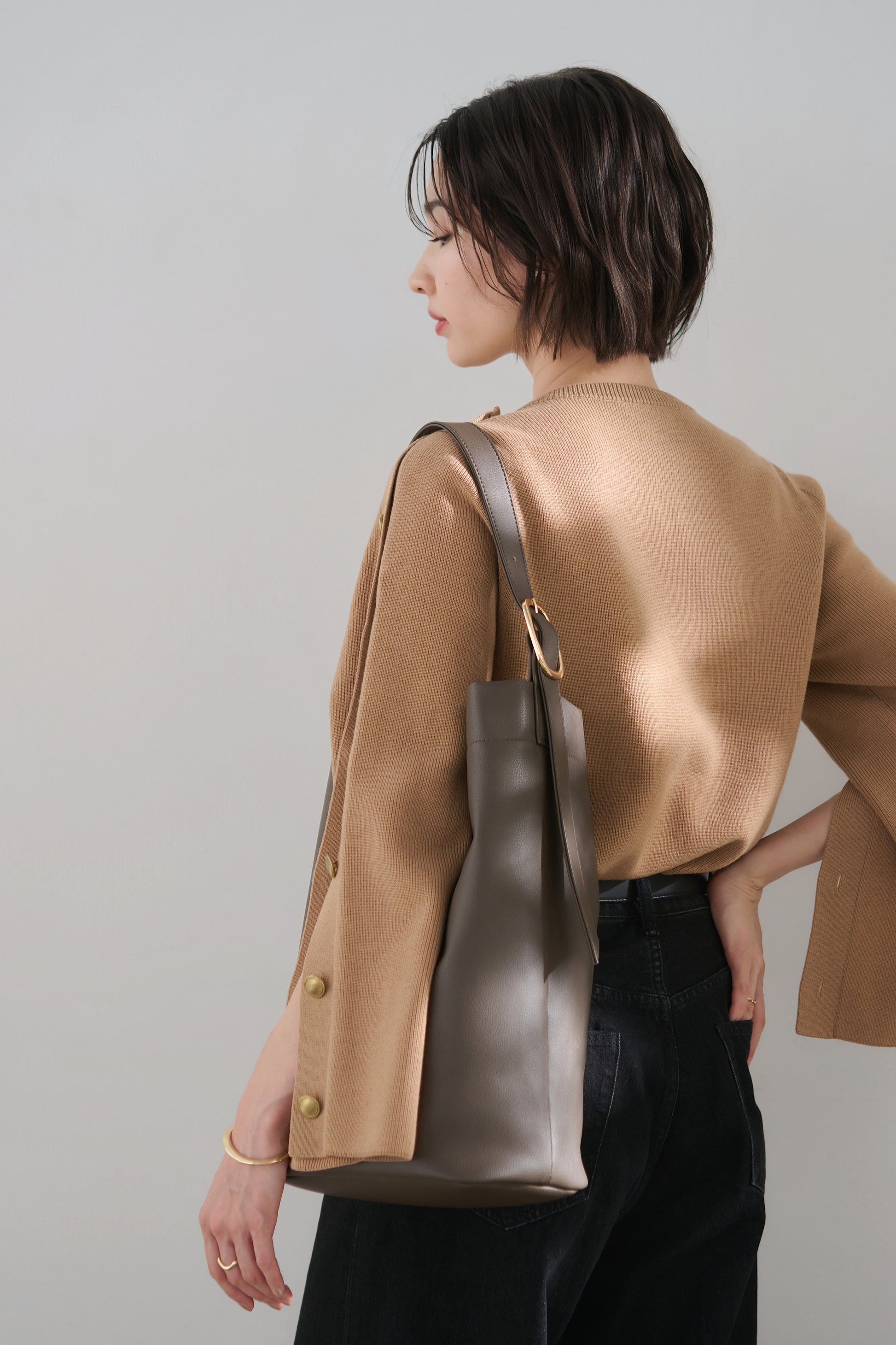 バッグのシルエットを変えたいときは、上部に取り付けられているスナップボタンを留めるだけ。気分に合わせてふたつの表情を楽しめます。