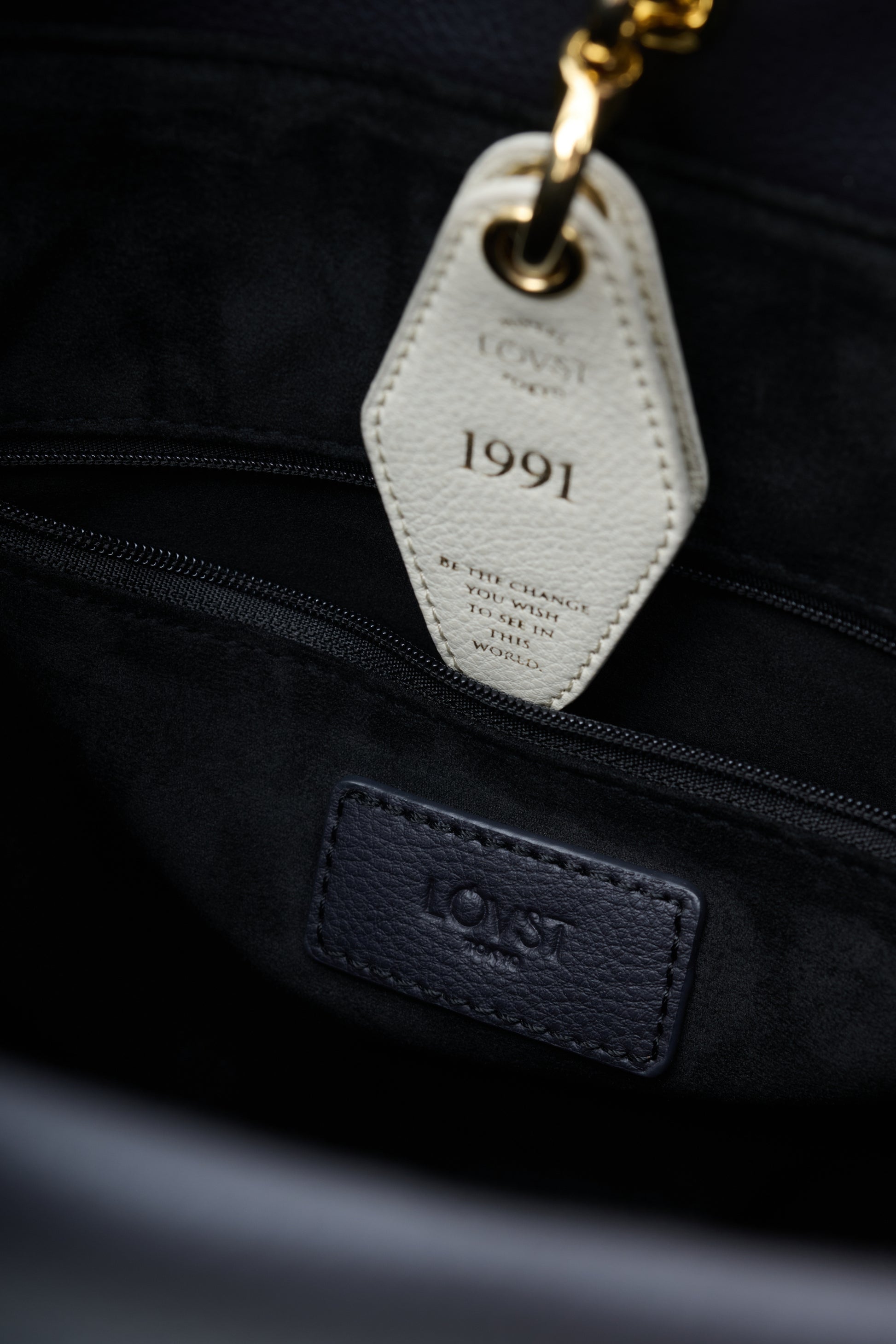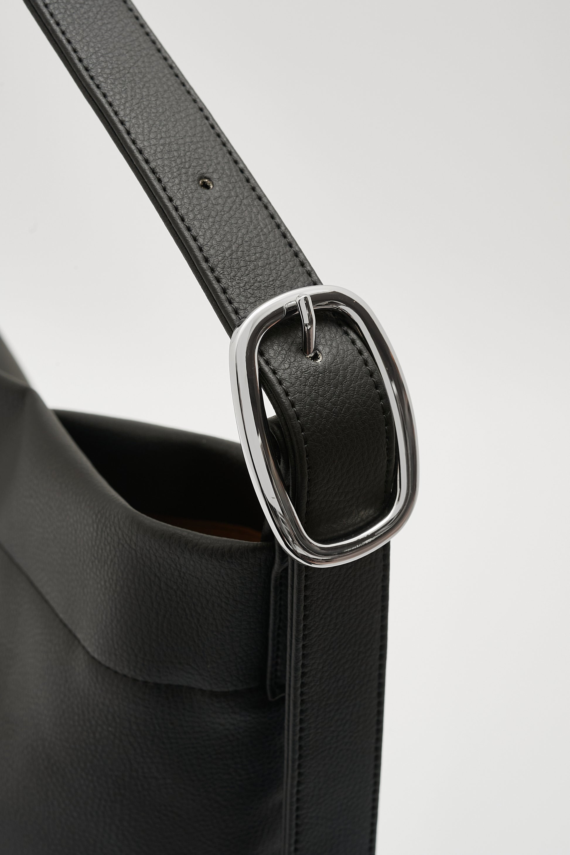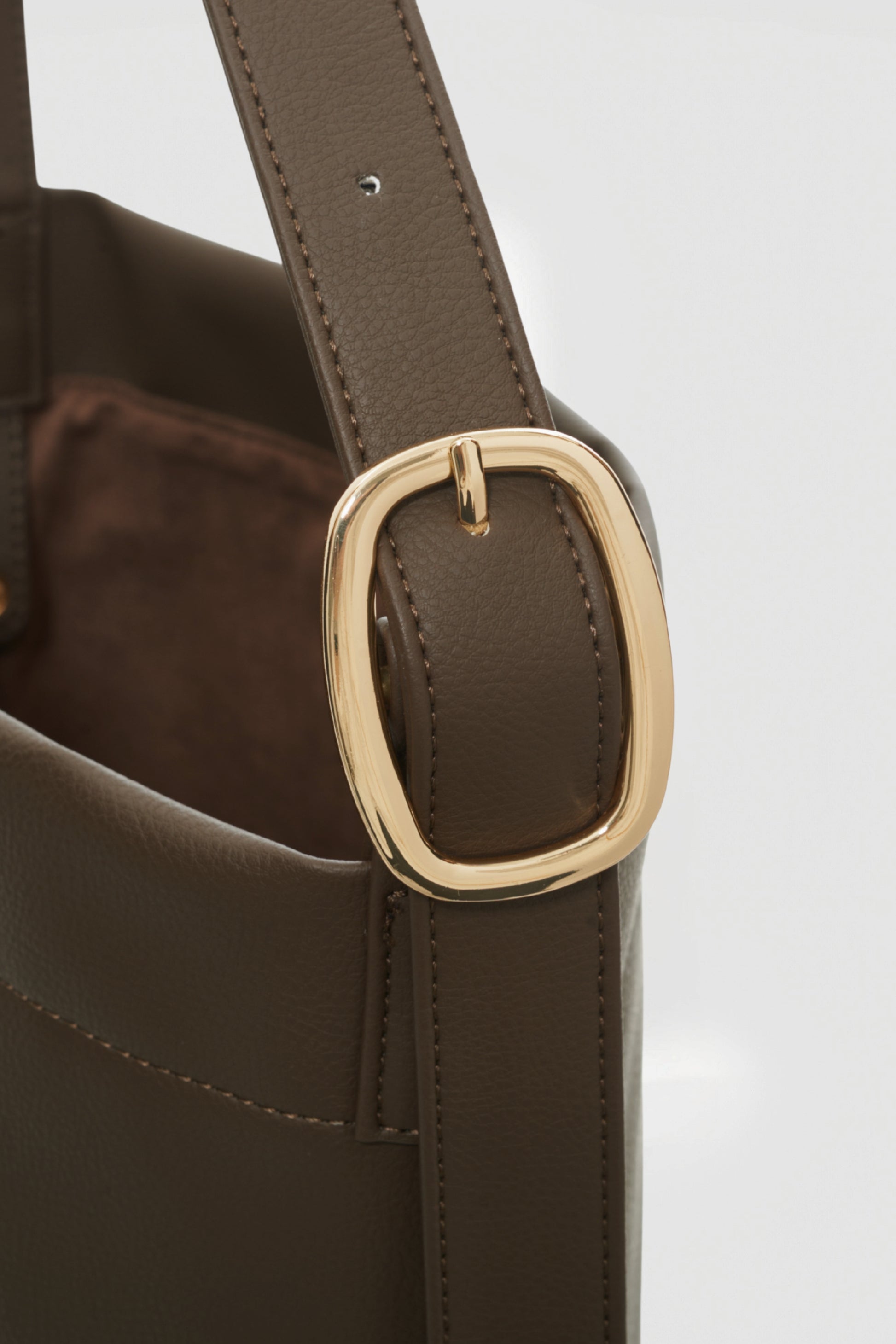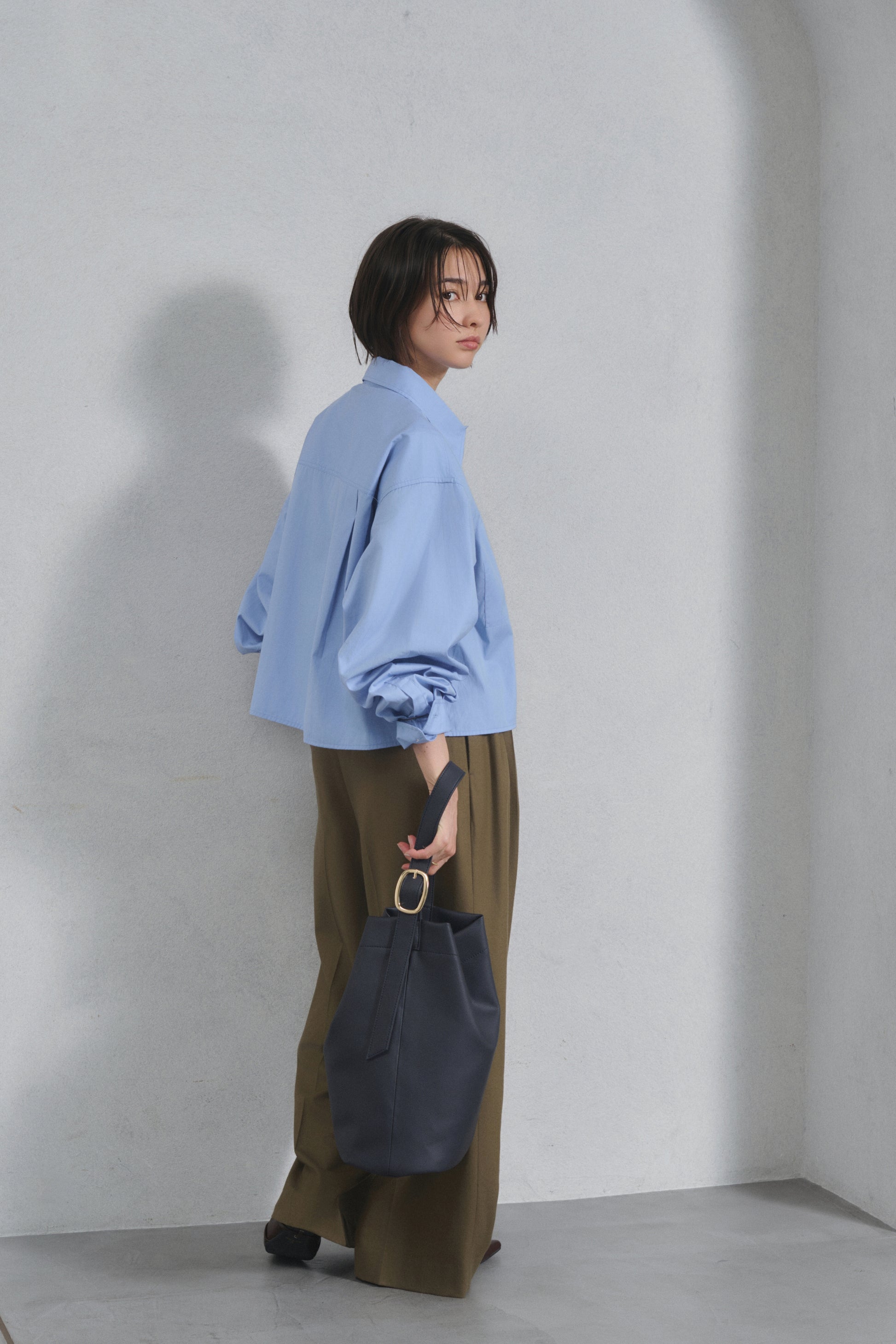 バッグのシルエットを変えたいときは、上部に取り付けられているスナップボタンを留めるだけ。気分に合わせてふたつの表情を楽しめます。