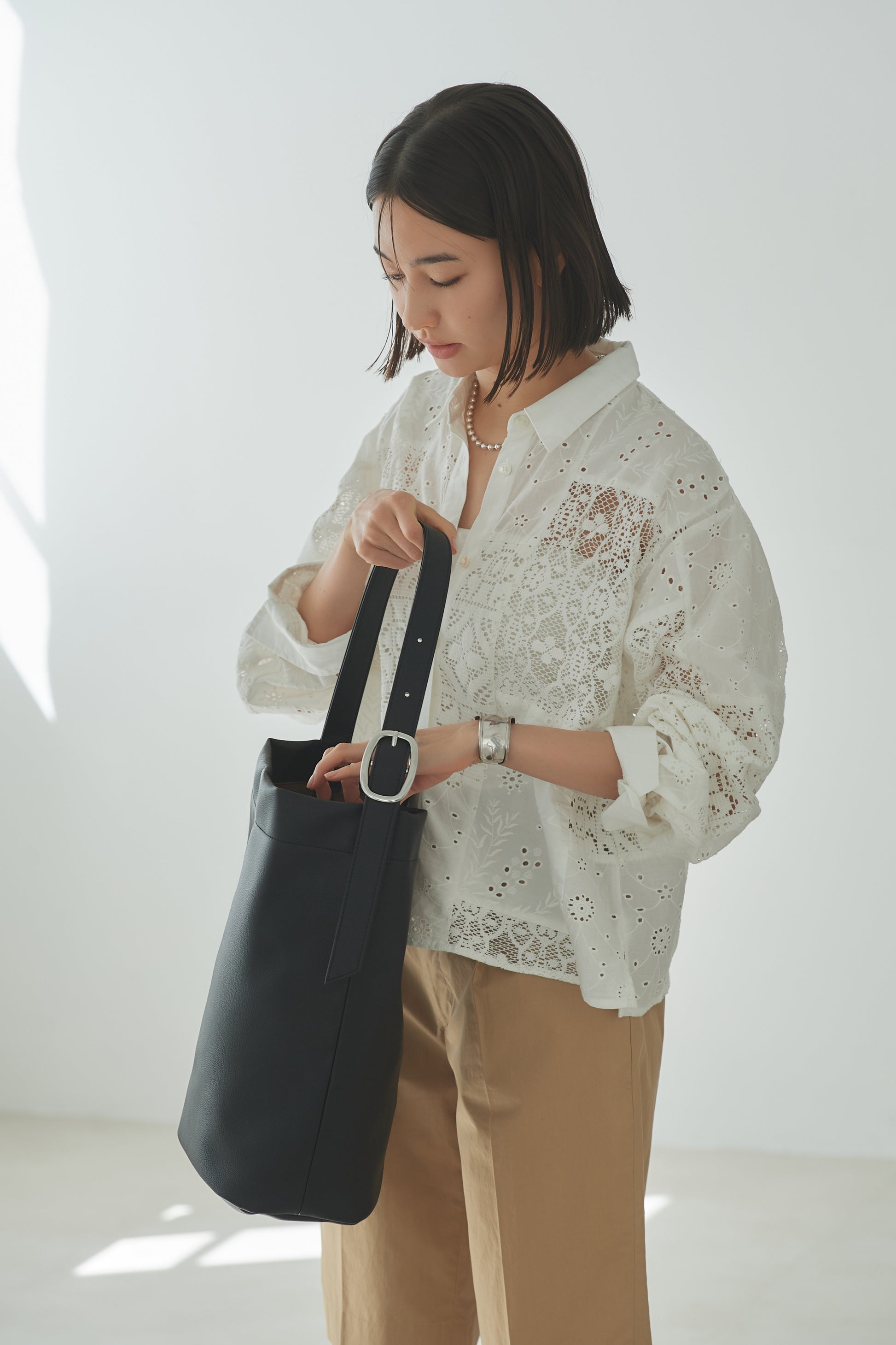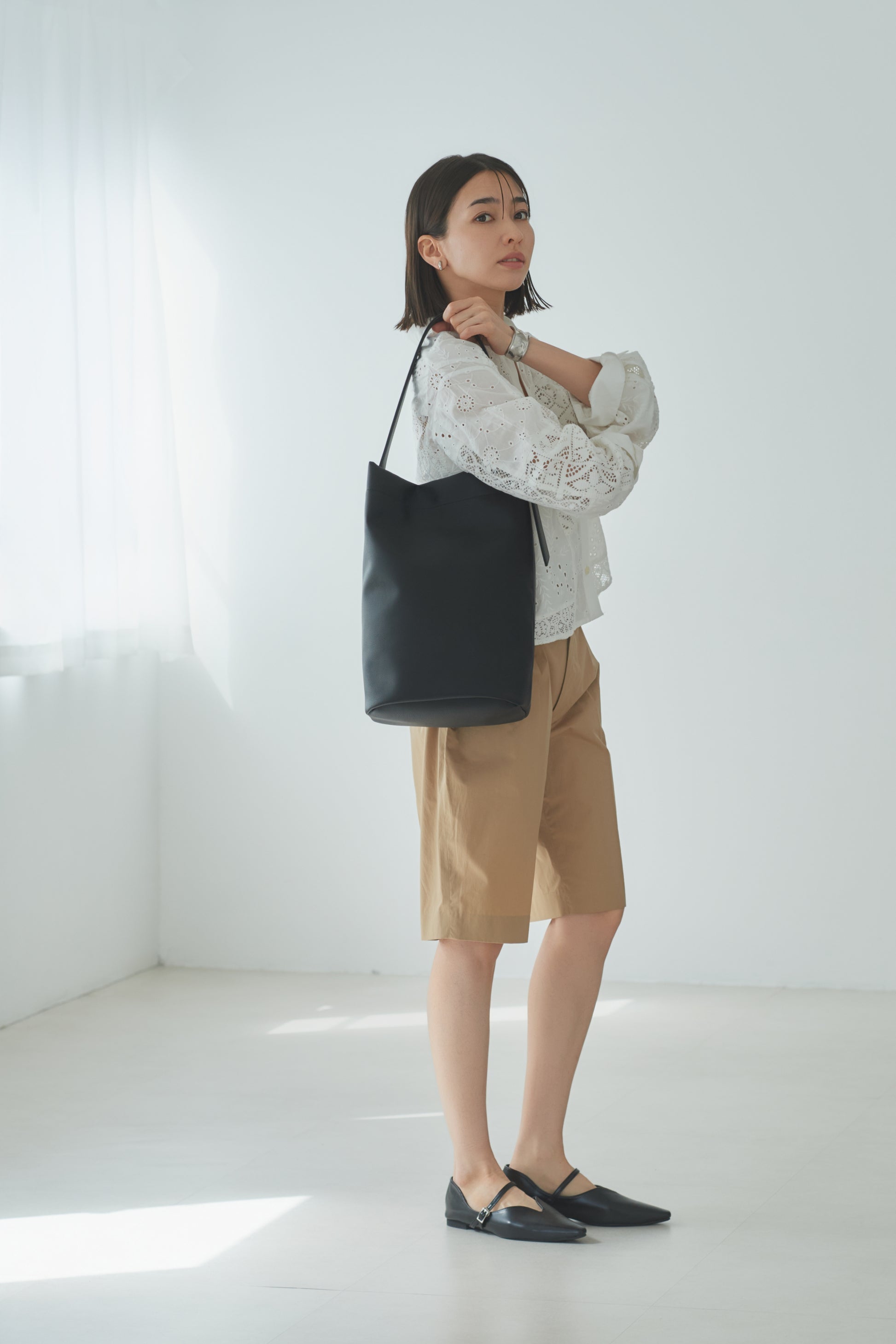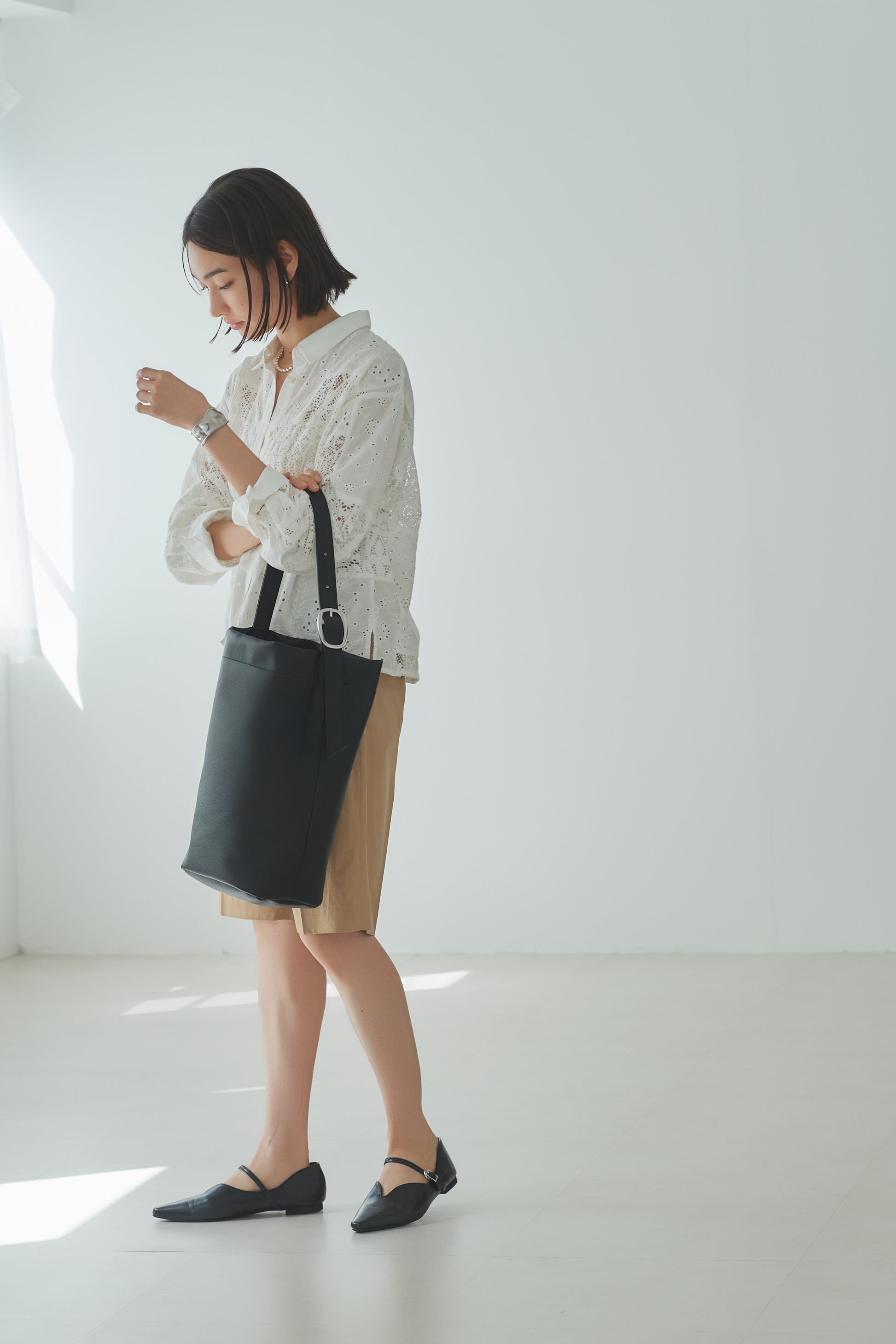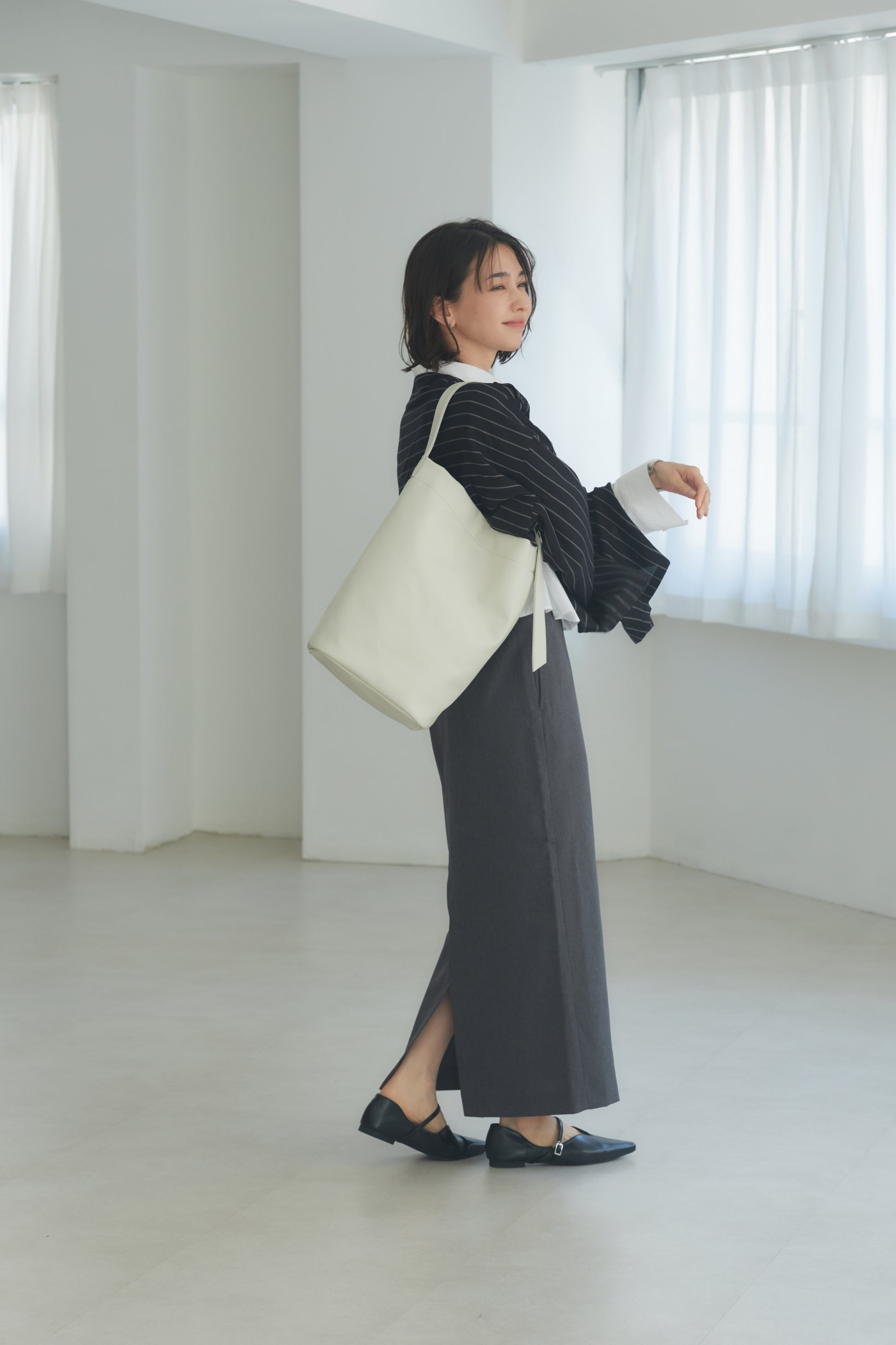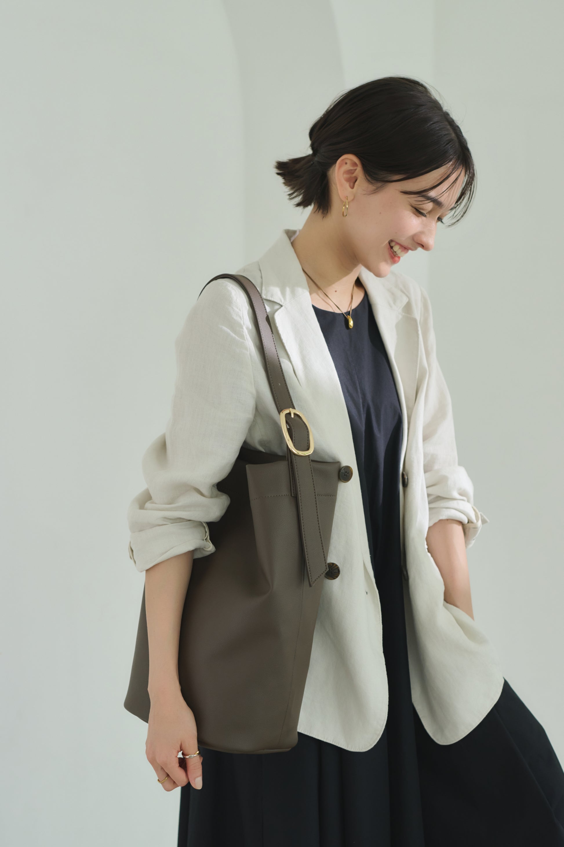 ・ボタン*を留めるだけでシルエットを変えて2Wayで使える縦型トートバッグ。