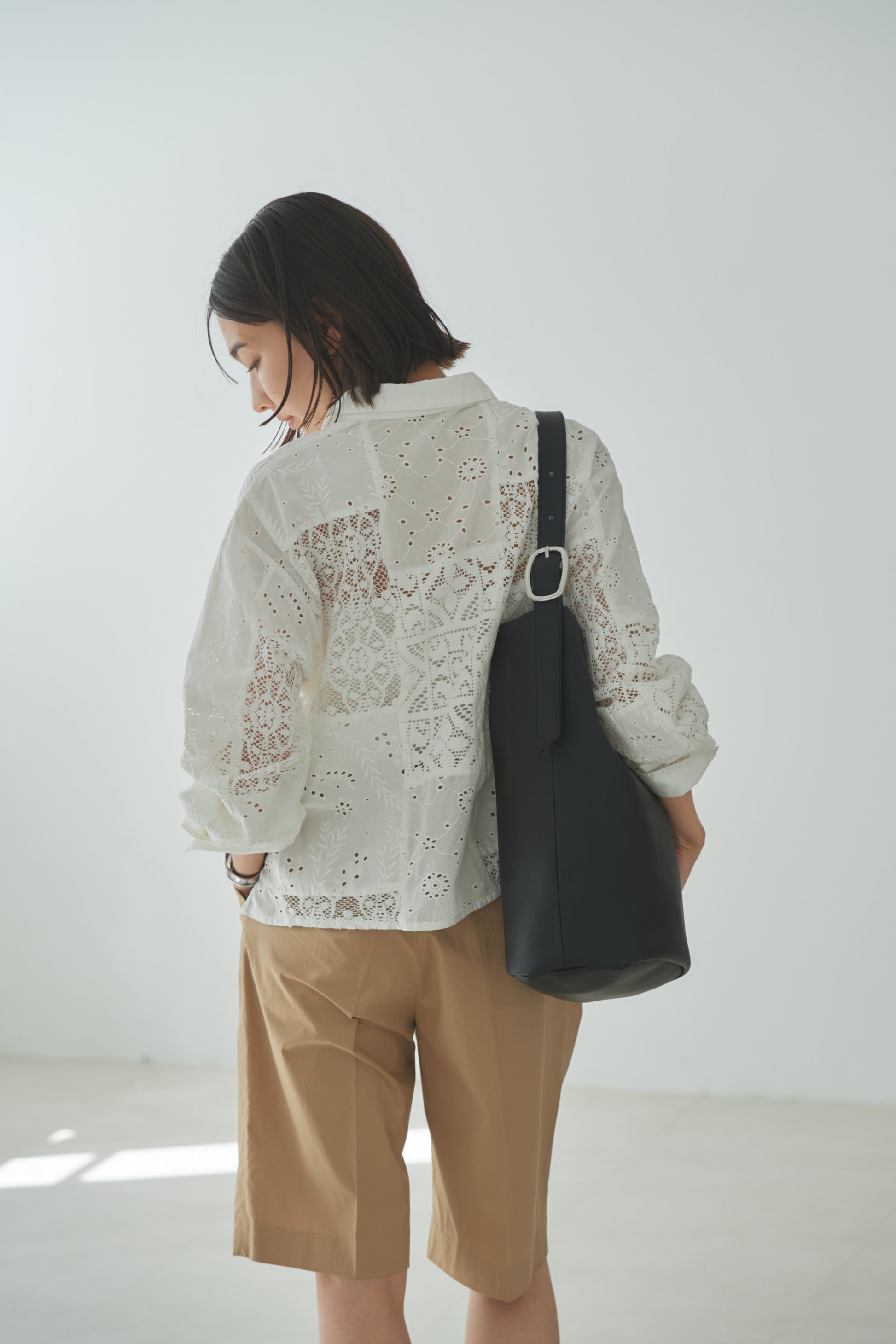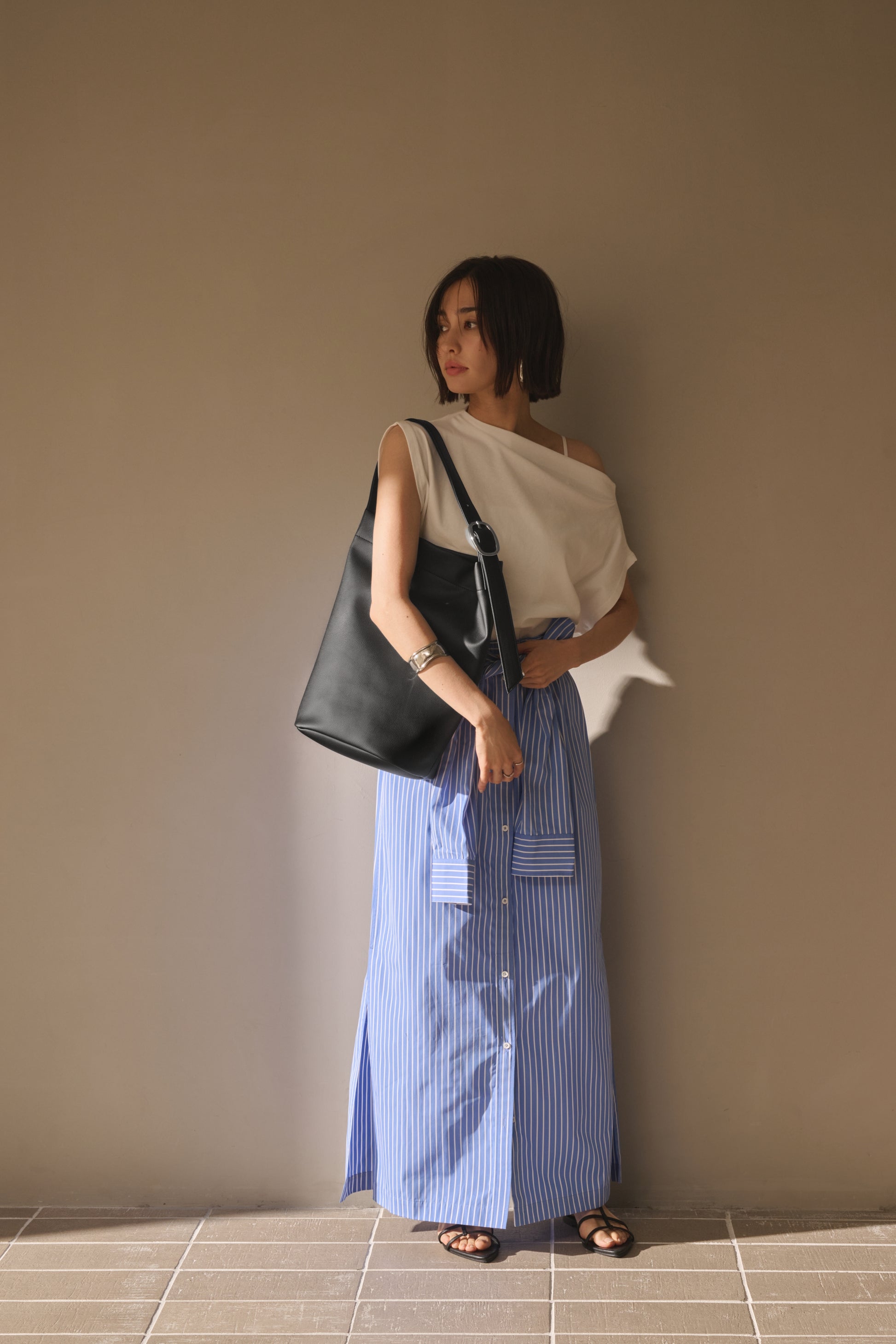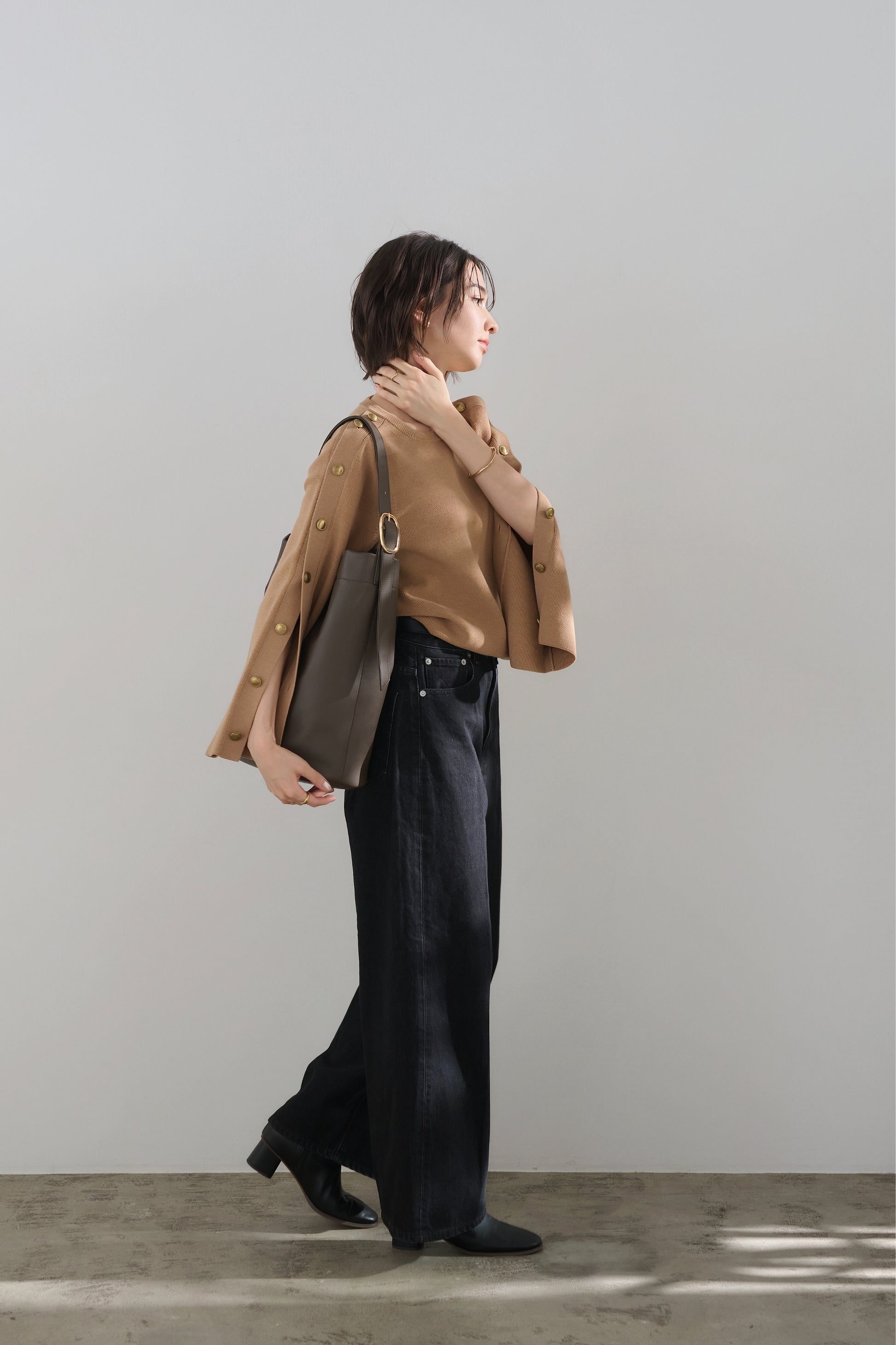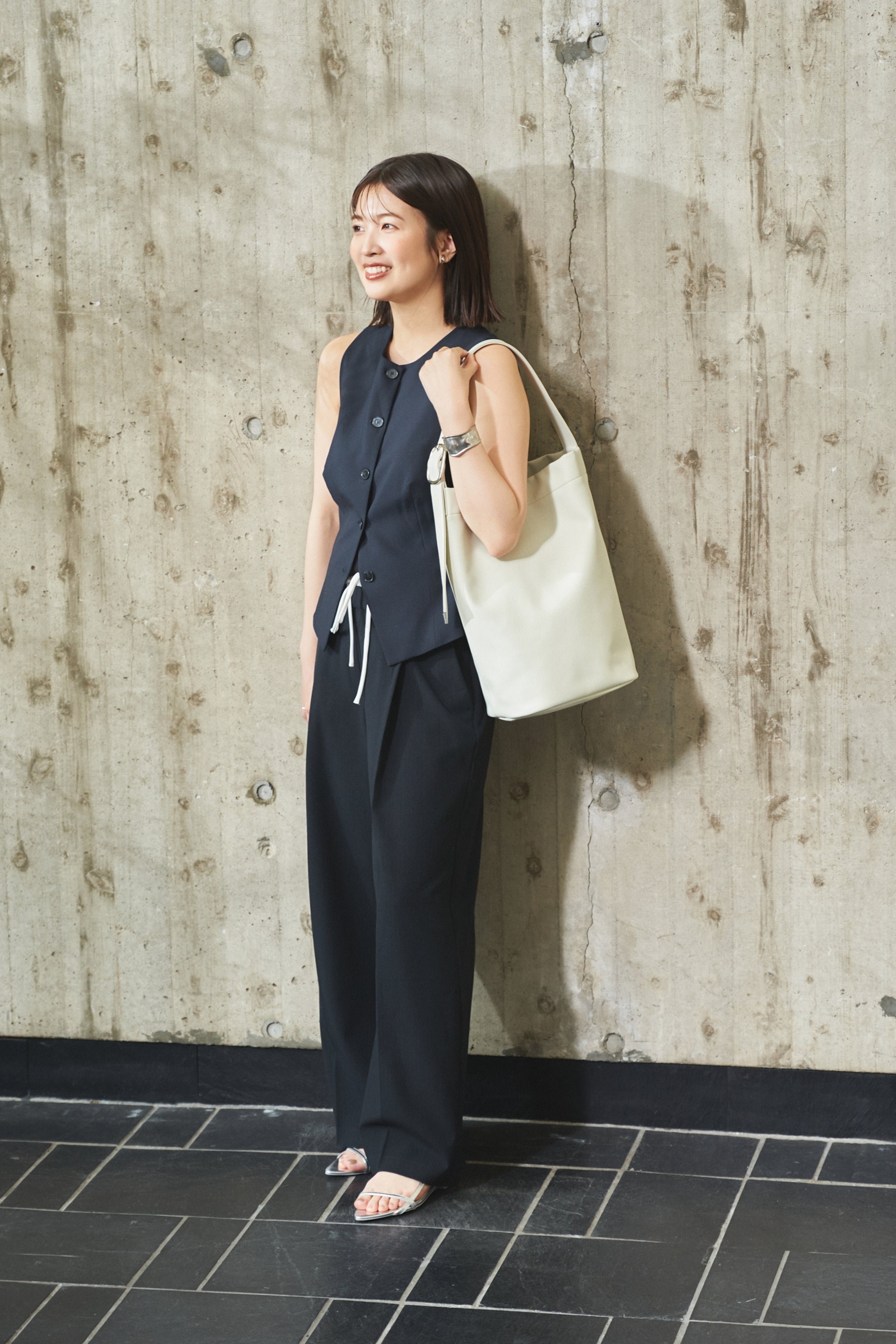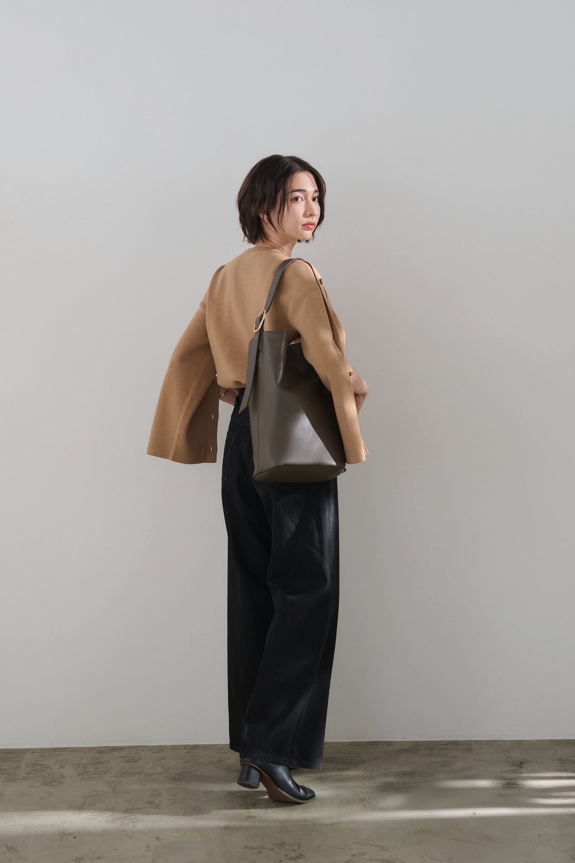・ボタン*を留めるだけでシルエットを変えて2Wayで使える縦型トートバッグ。