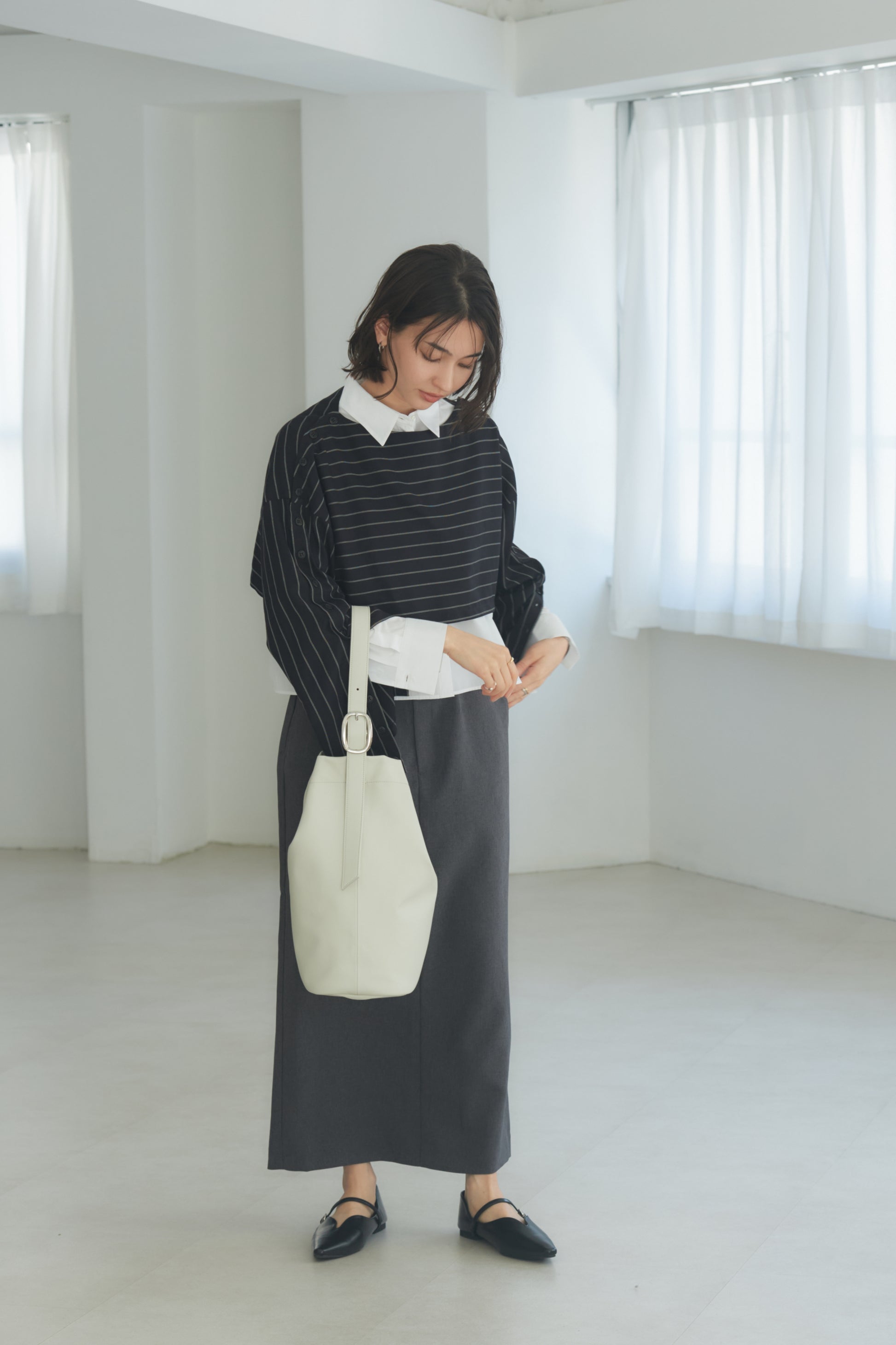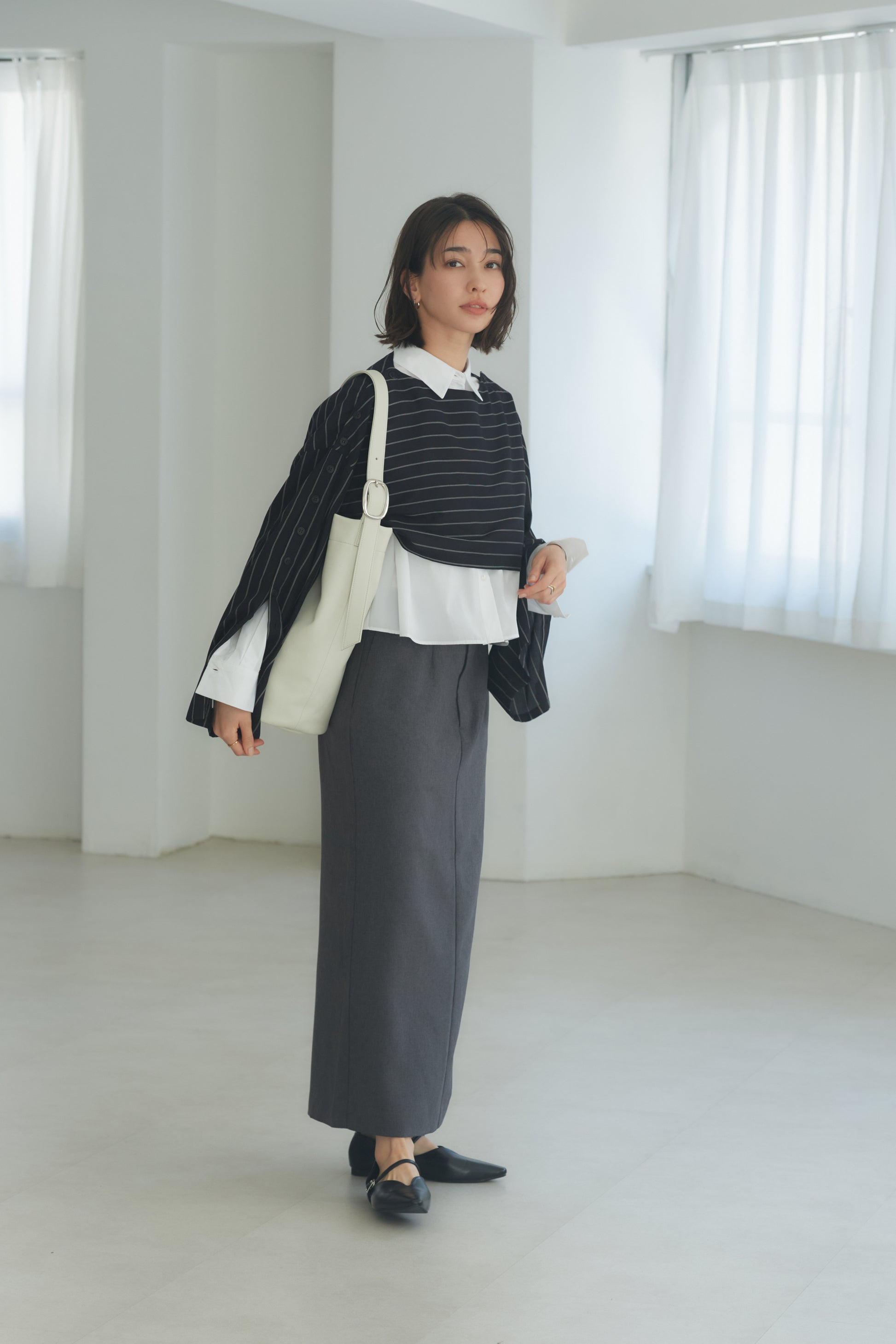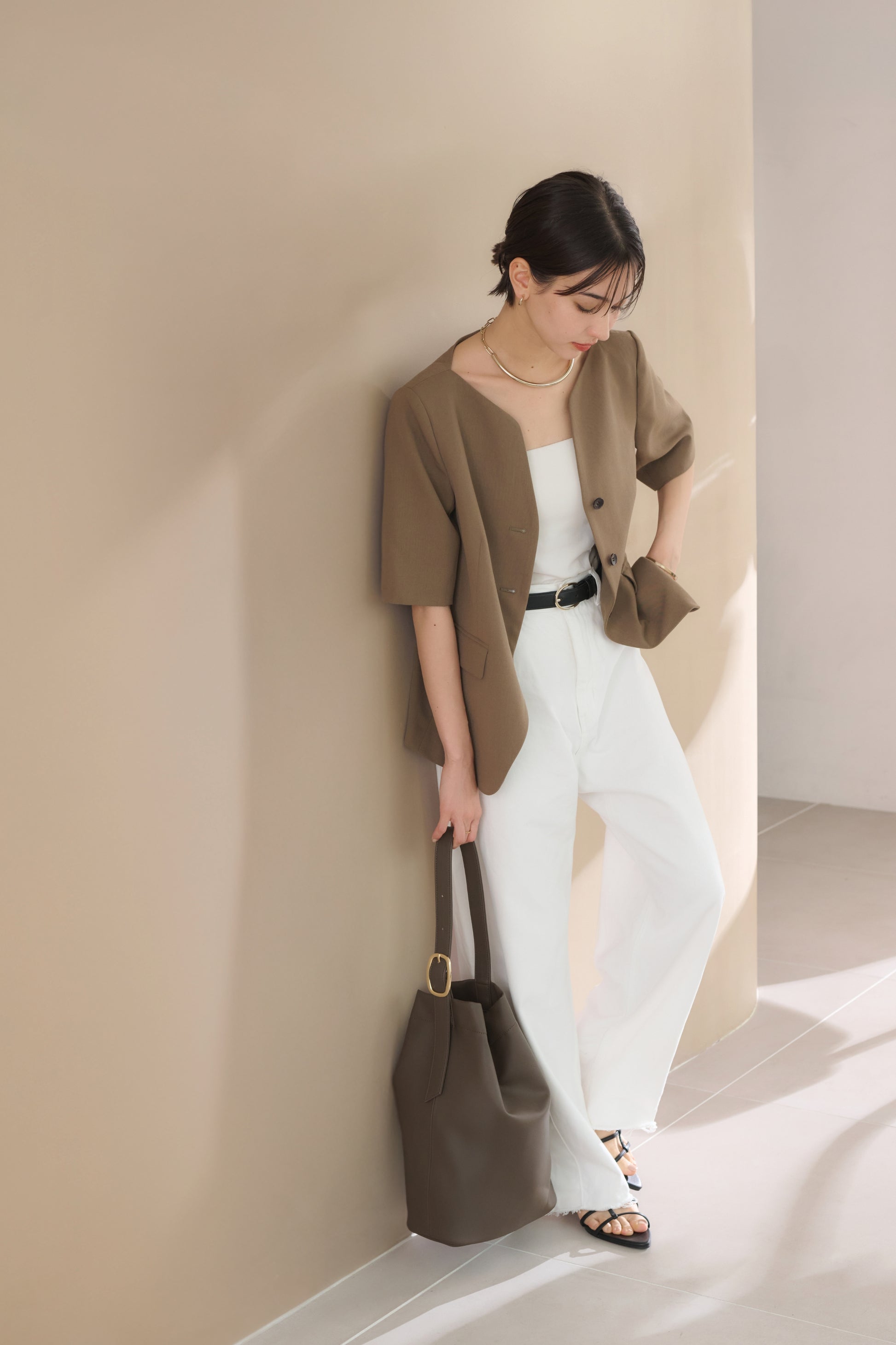 プライベートでお出かけするOFFの日には、シルエットを変えると一気にこなれた印象に。