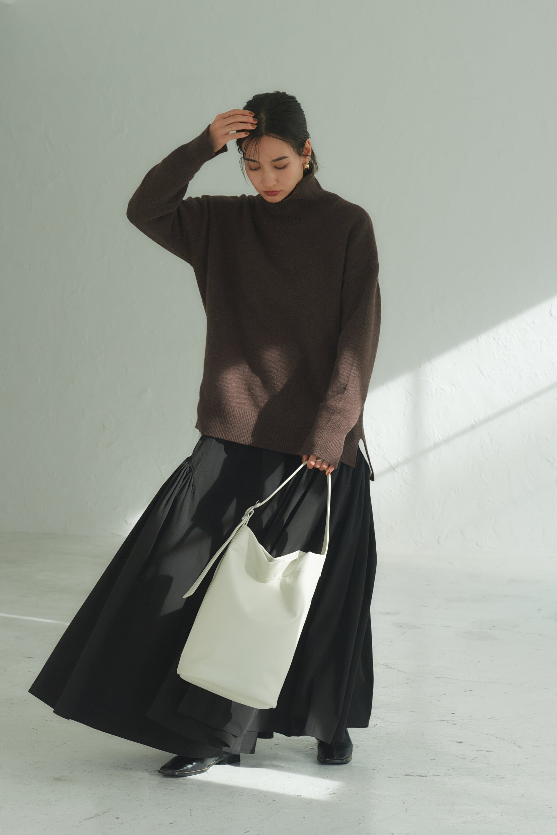 Off Whiteを使っています。暗くなりがちな服装にも白が映えるので気に入っています。とにかく軽いので肩が凝らないし、柔らかいので使いやすいです! 汚れも拭いたらとれるので、お手入れがしやすいのも助かります。