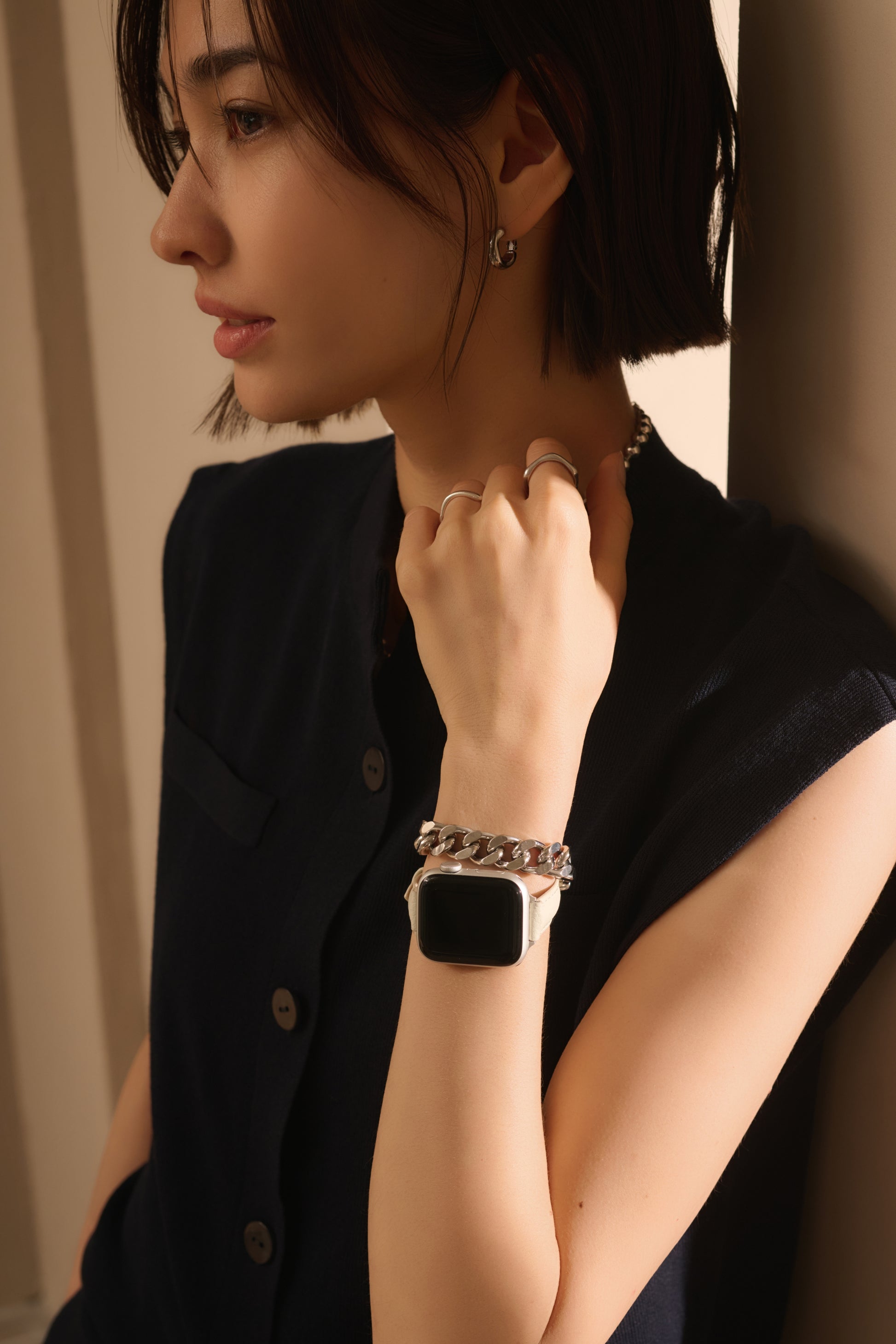 高級感のあるレザーブレスレットやシルバーアクセサリーを身につける感覚で、コーディネートに取り入れていただけます。