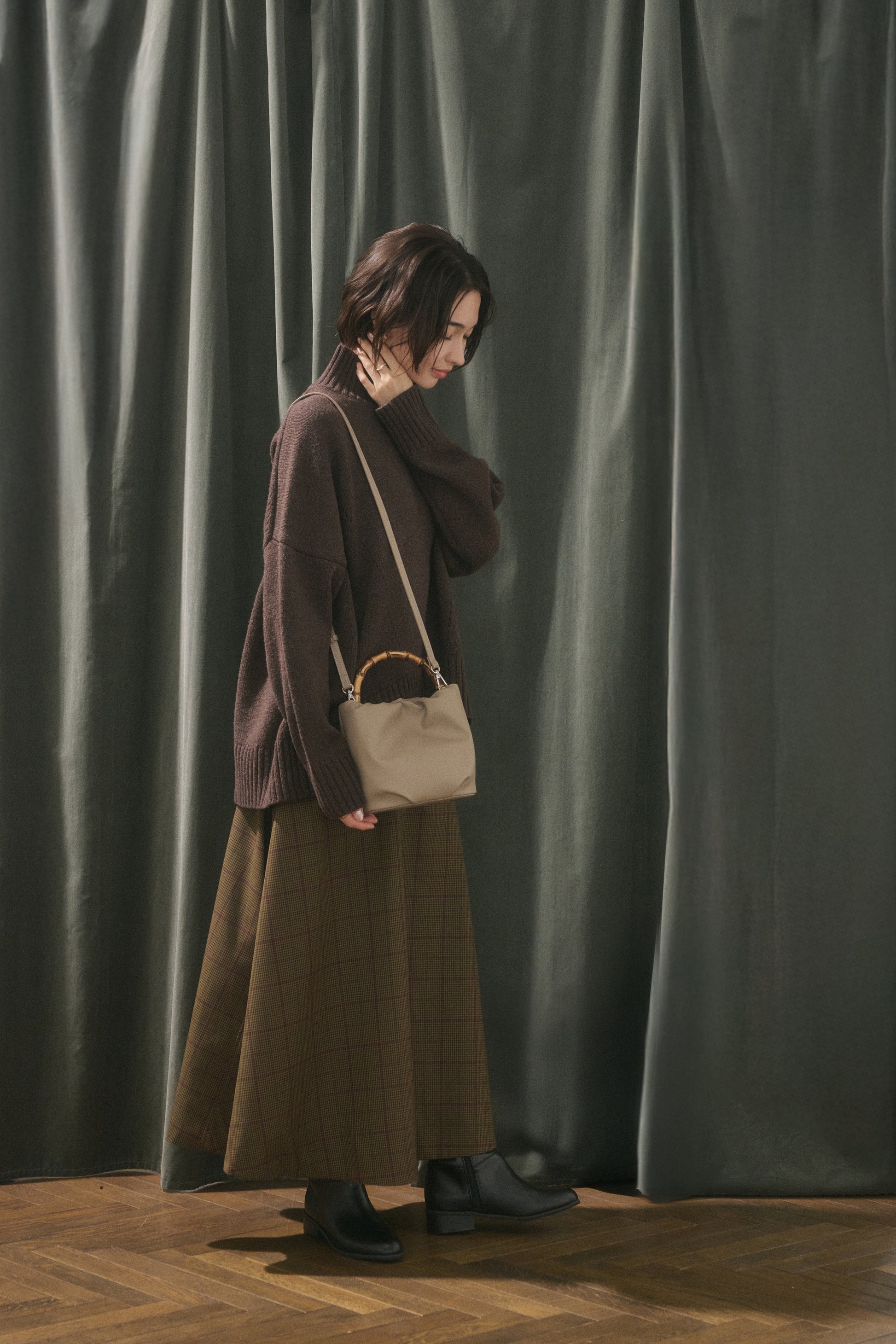 カジュアルな印象の「バンブー」の持ち手は、デニムを使ったパンツスタイル等、デイリーファッションに合わせやすいのが特徴です。