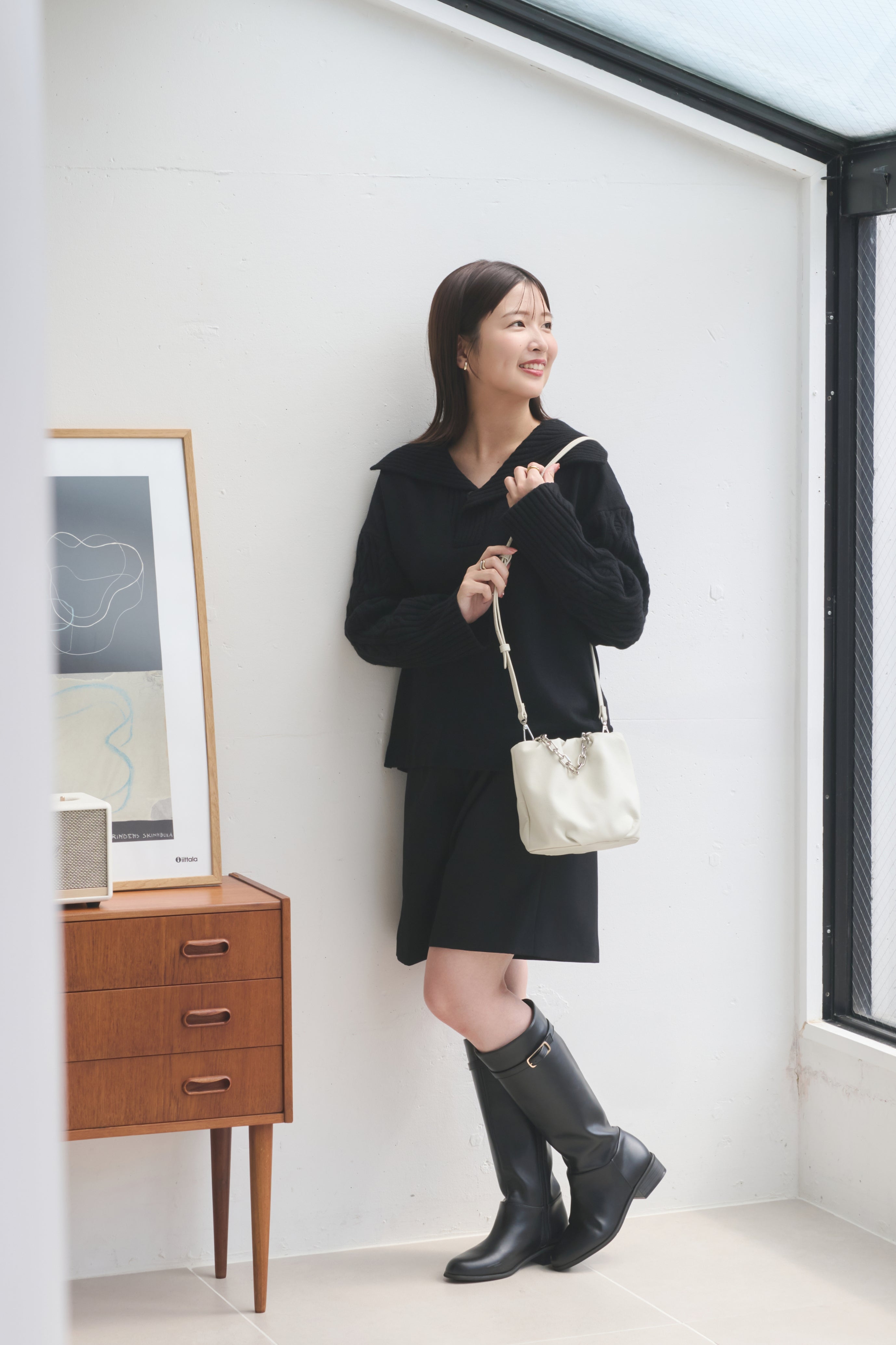 また、持ち手を「チェーン」に付け替えれば、一気に洗練された印象に。