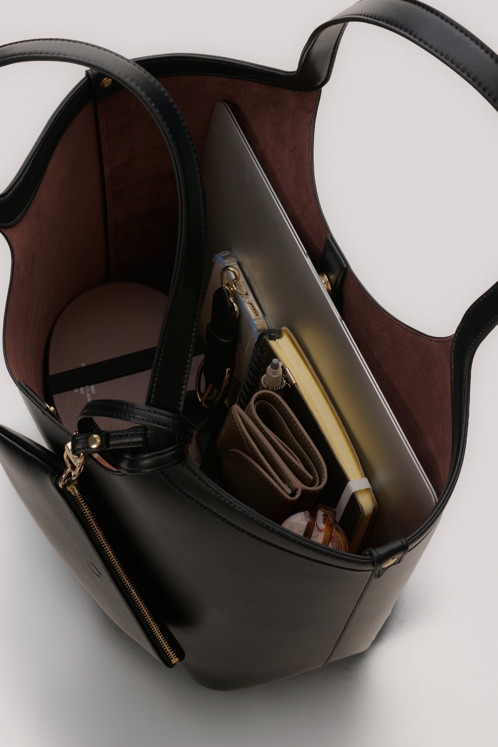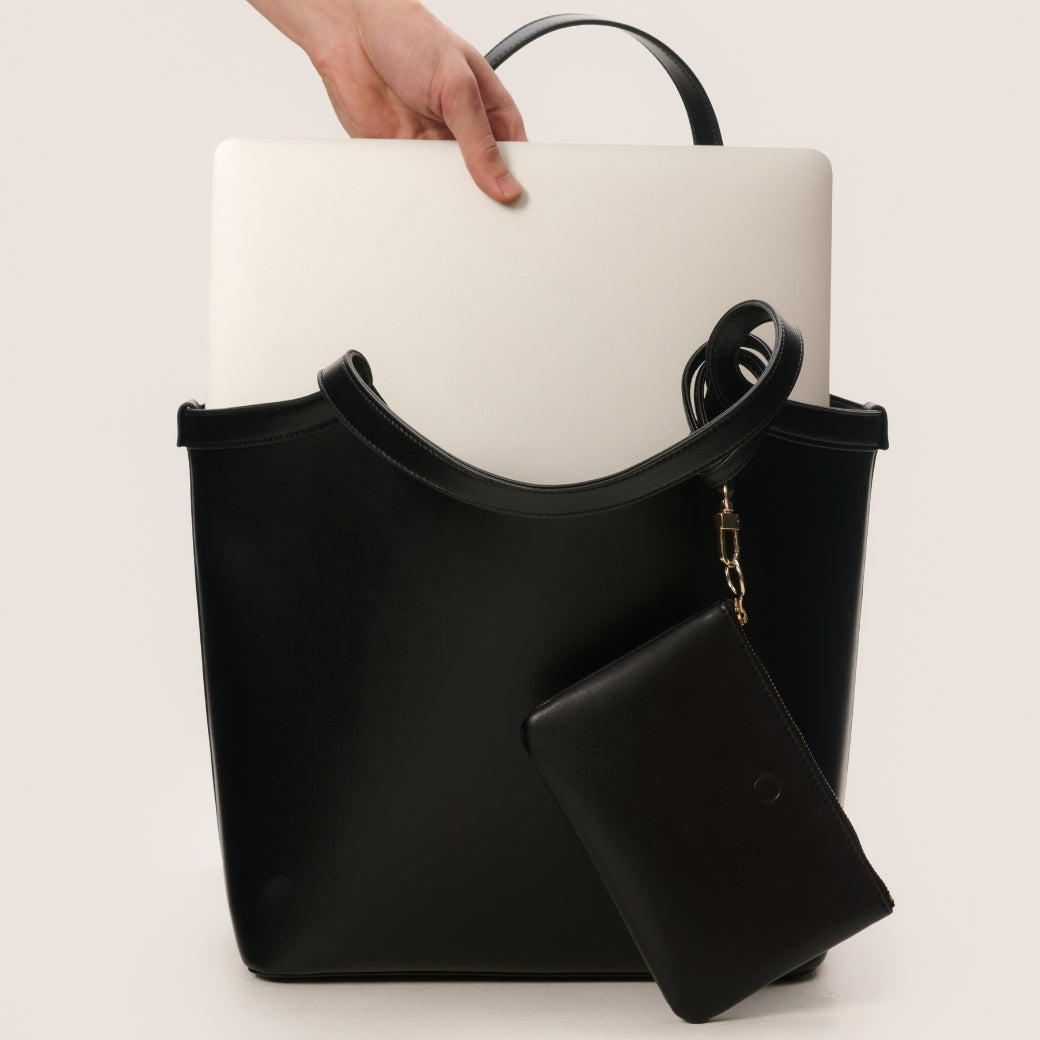 本体には14インチ* までのノートパソコンが収納可能。持ち歩きが煩わしく感じてしまいがちなパソコンを、スマートに持ち運ぶことが可能です。