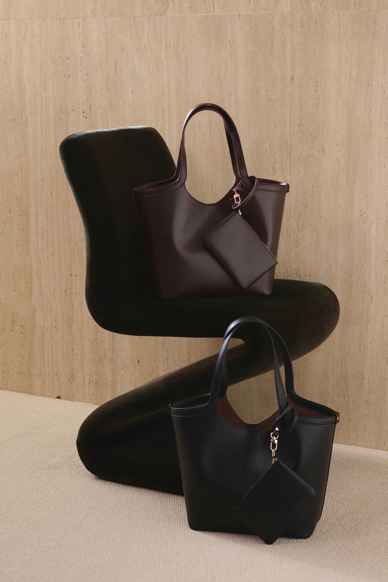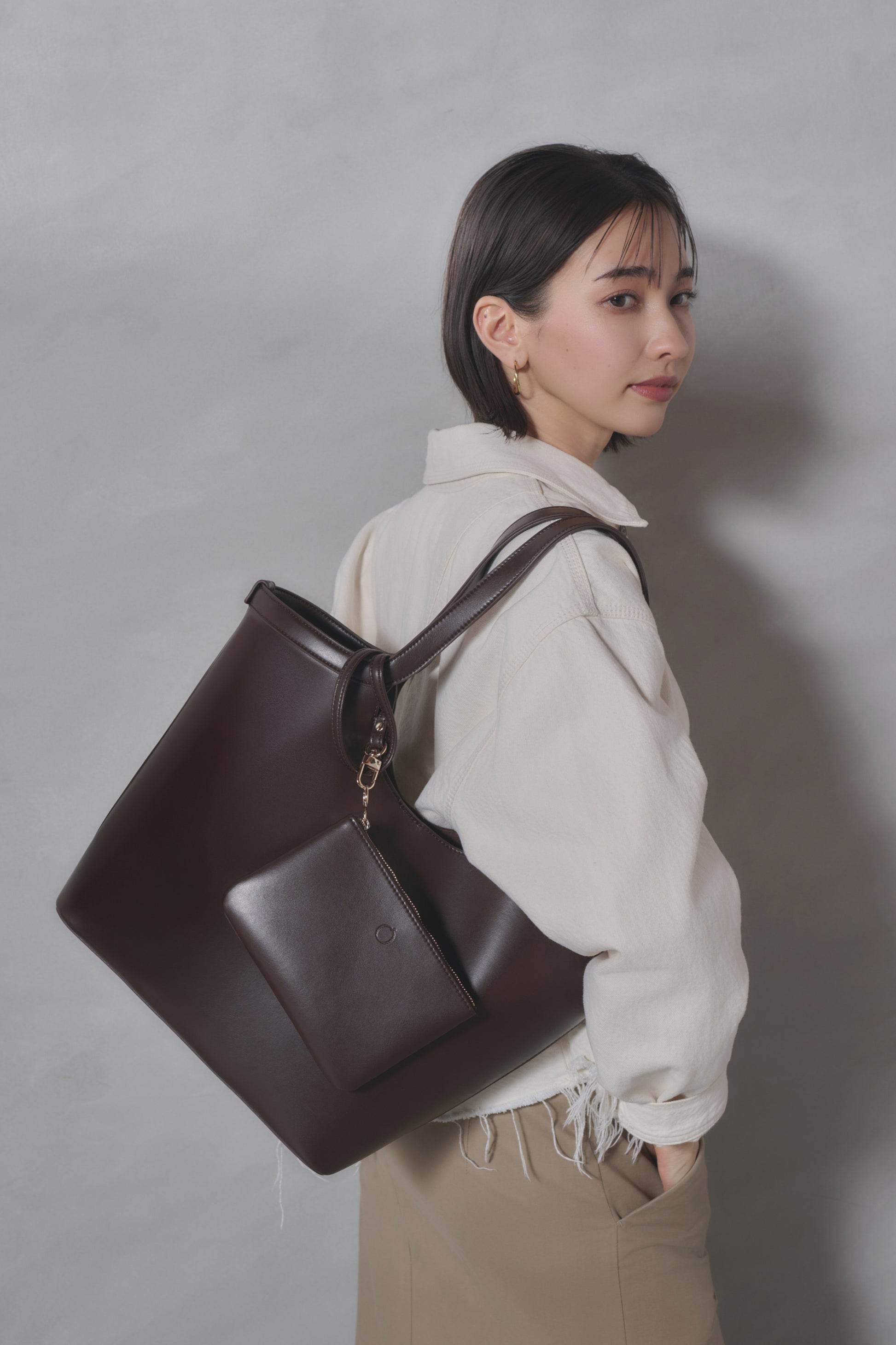 約400gと超軽量かつ大容量で、付属のポーチを仕切りにできたりと、利便性も◎ また、フロントのカッティングも腕が通しやすく、お仕事時の持ち運びにぴったりです! どちらのカラーもとっても可愛いですが、私はDark Brownが気になっています!