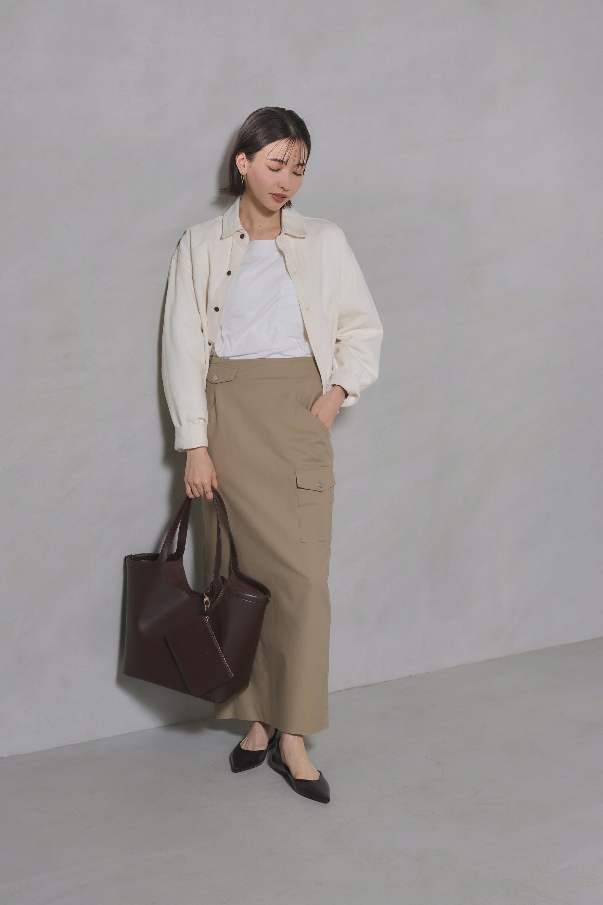 154cmの小柄タイプな私も、身長とのバランスが取りやすいトートバッグです! たっぷり入る容量でありながら、逆台形のシルエットでちょうど良い大きさが魅力。スタイリングを上品に演出してくれます。さらに、バッグ本体もとても軽く、たくさん荷物を入れても持ち歩きやすいところも嬉しいポイントです◎