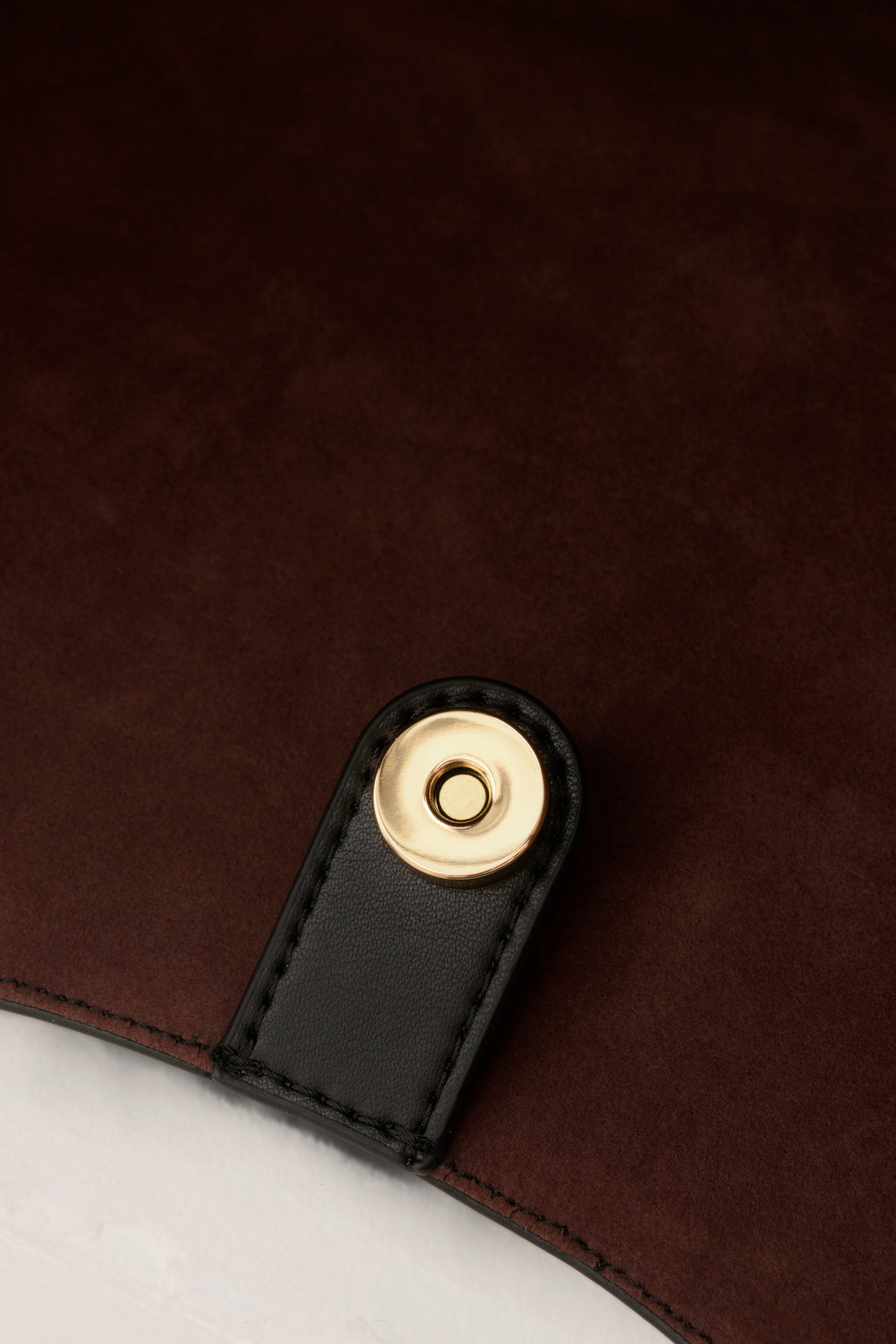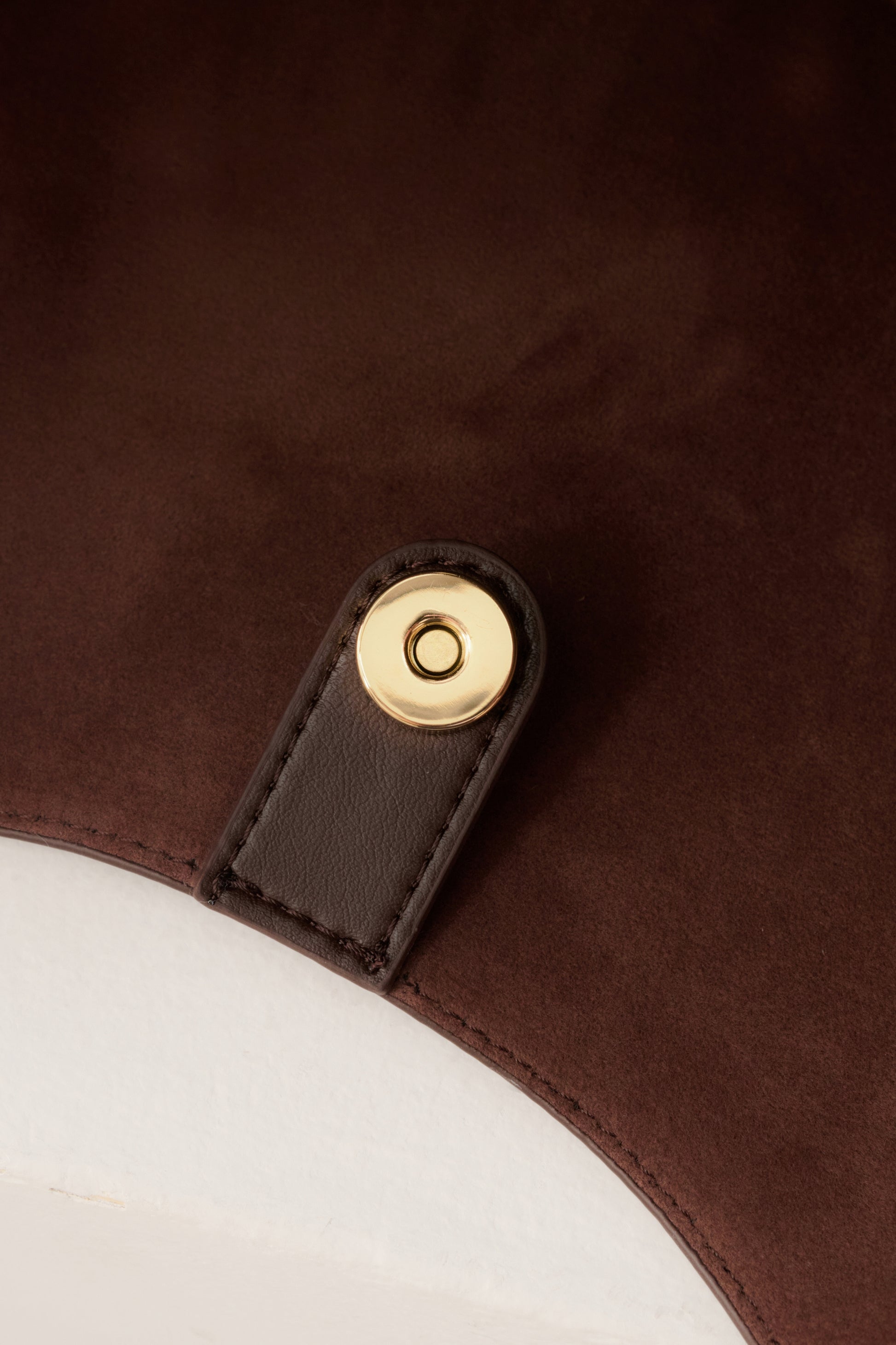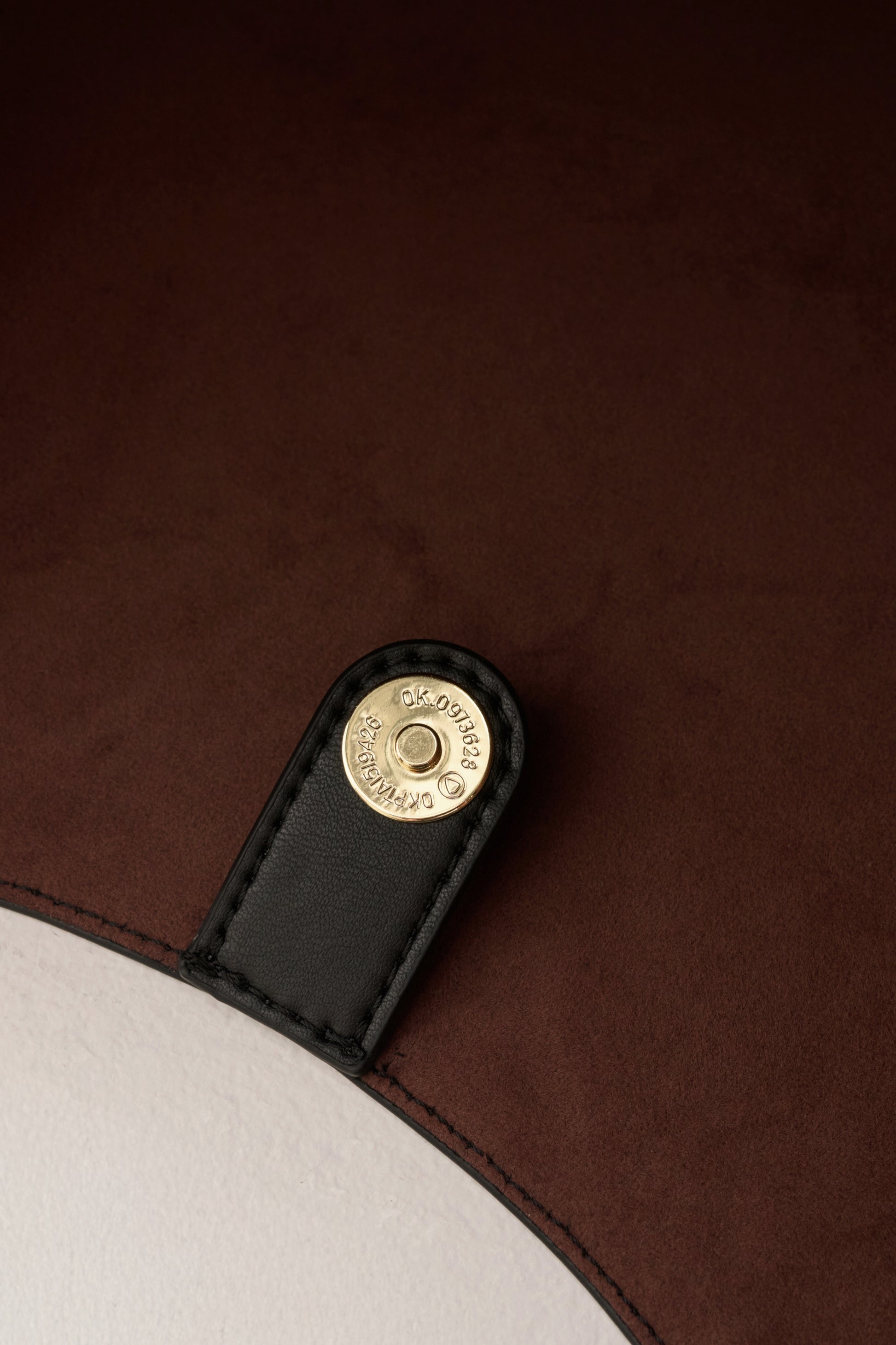 バッグのフロント部分にさりげなく半月型のカッティングをあしらった「Apple Multi Way Half-moon Bag」とお揃いのデザインです。