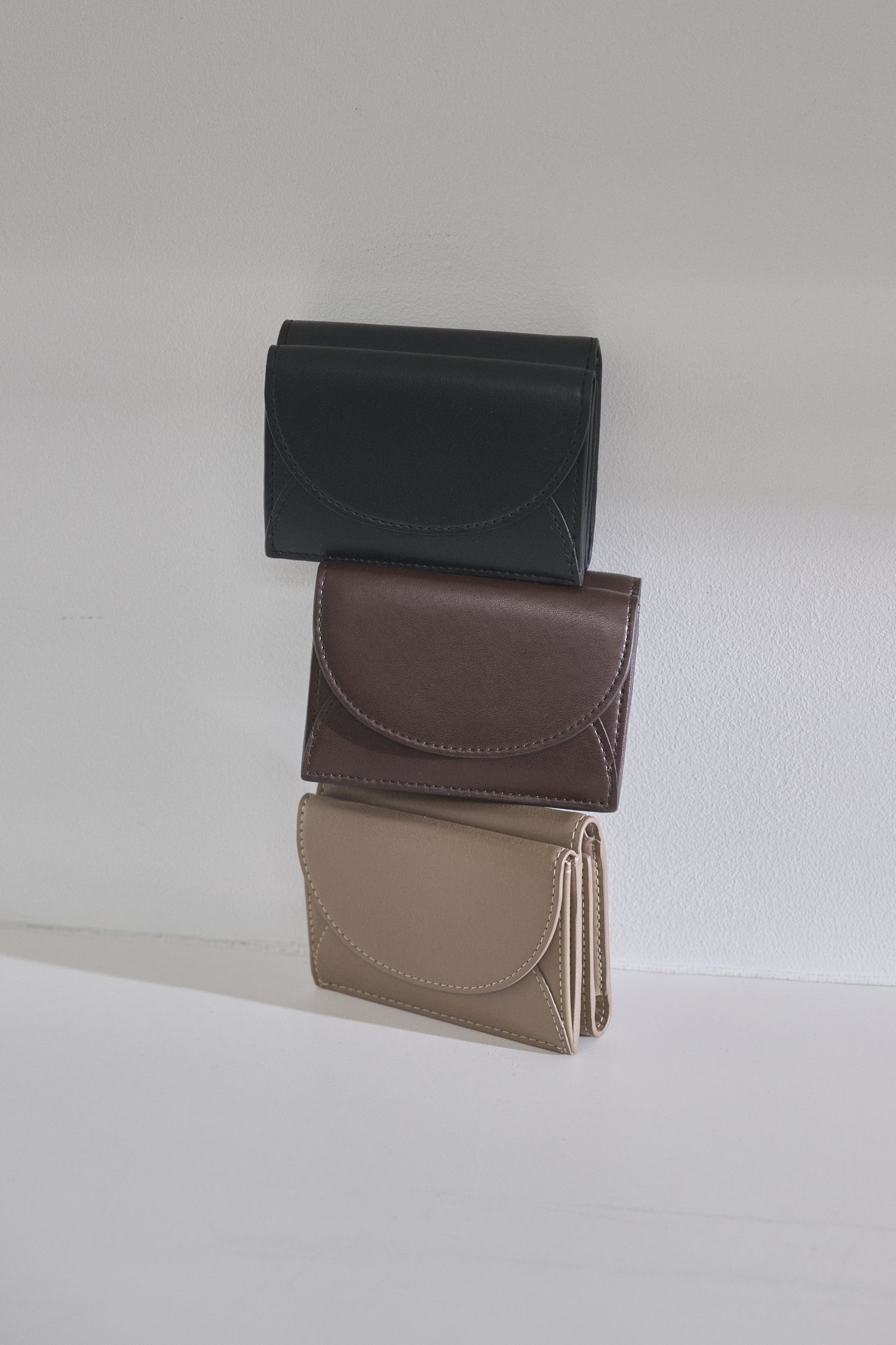 半月を合わせたようなデザインが魅力の3つ折り財布