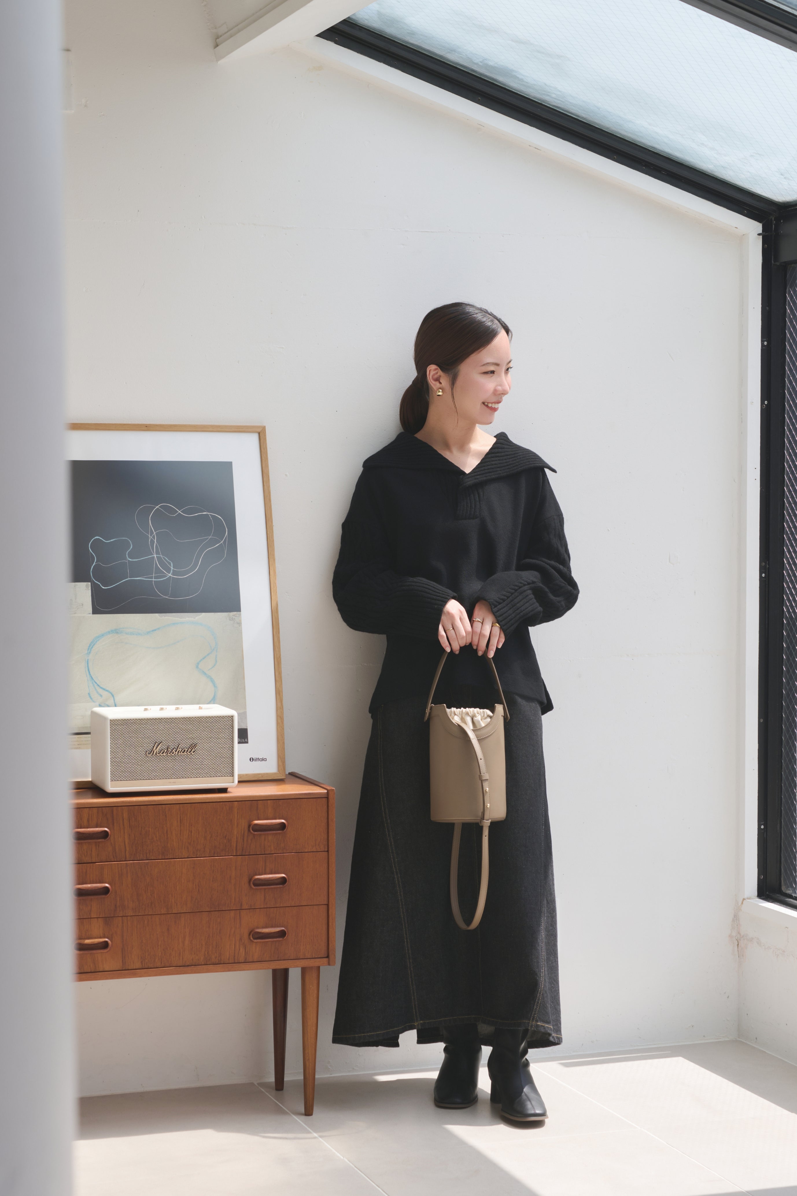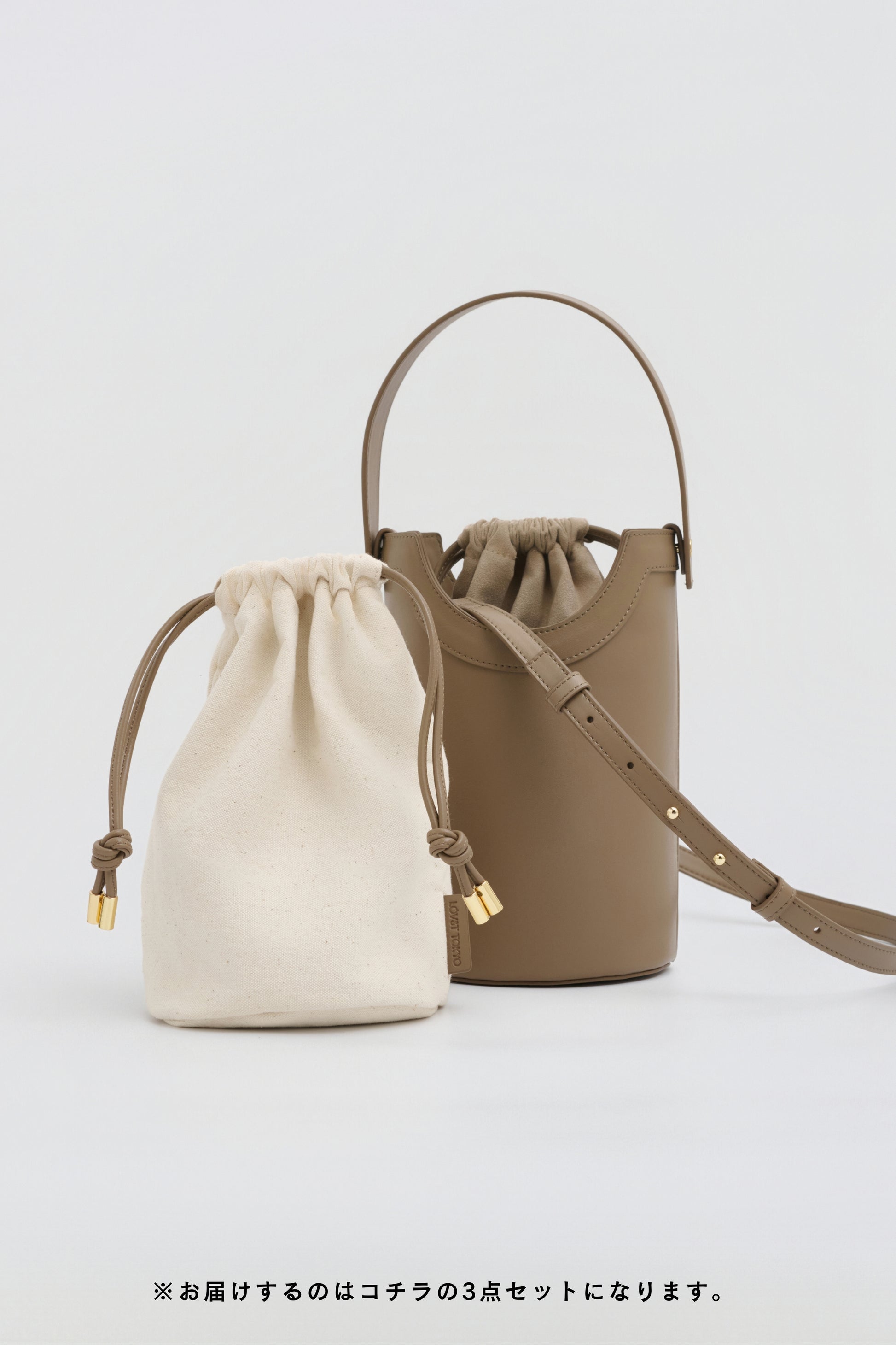 そして、カジュアルな気分の日はキャンバスの巾着、こなれ感やあたたかみが欲しい日はスエード調の巾着を合わせて…と気分やシーンに合わせてアレンジを楽しめます。