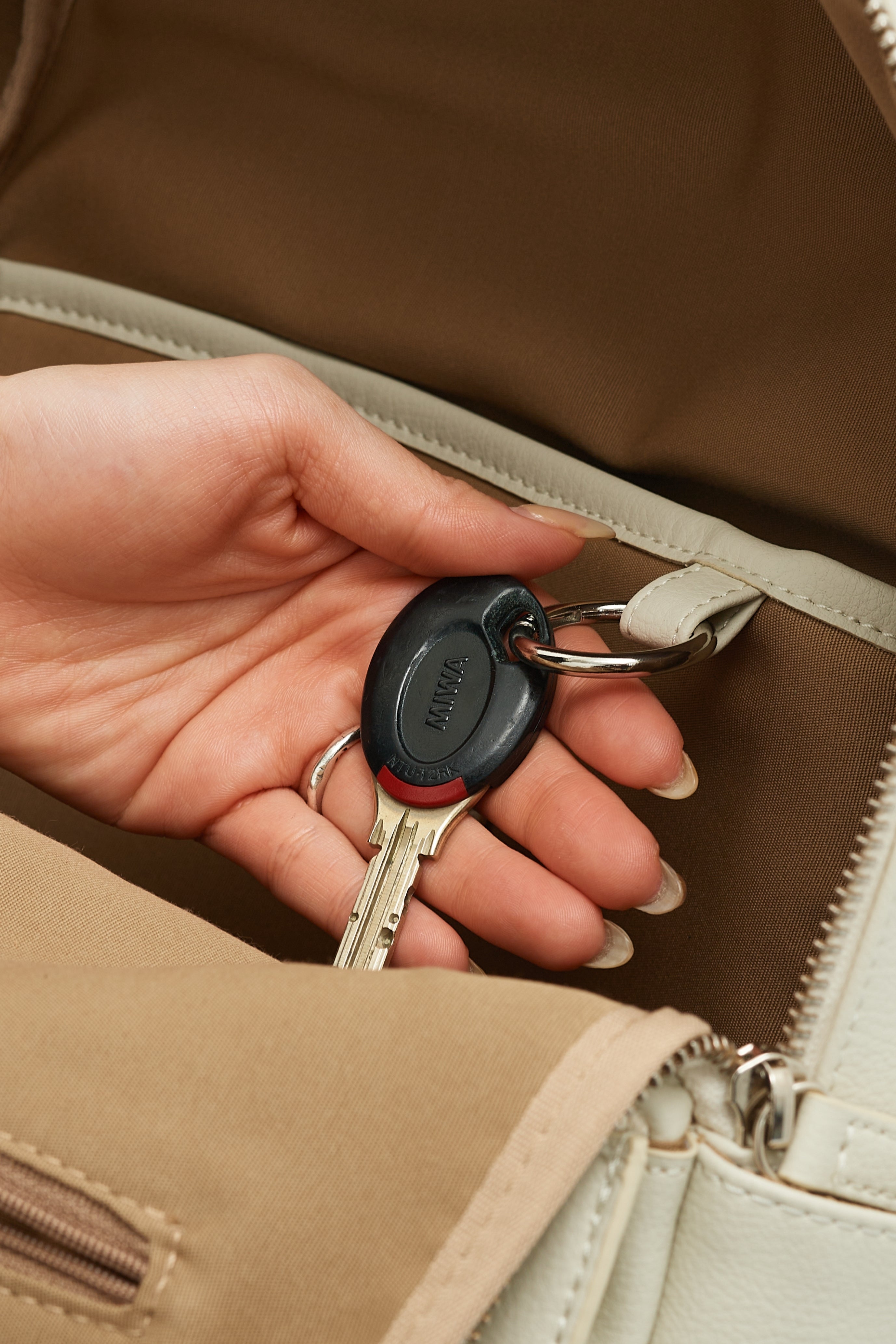 ・本体に備え付けのキーリングがあり、バッグの中で行方不明になりがちな鍵をスマートに持ち運び可能。