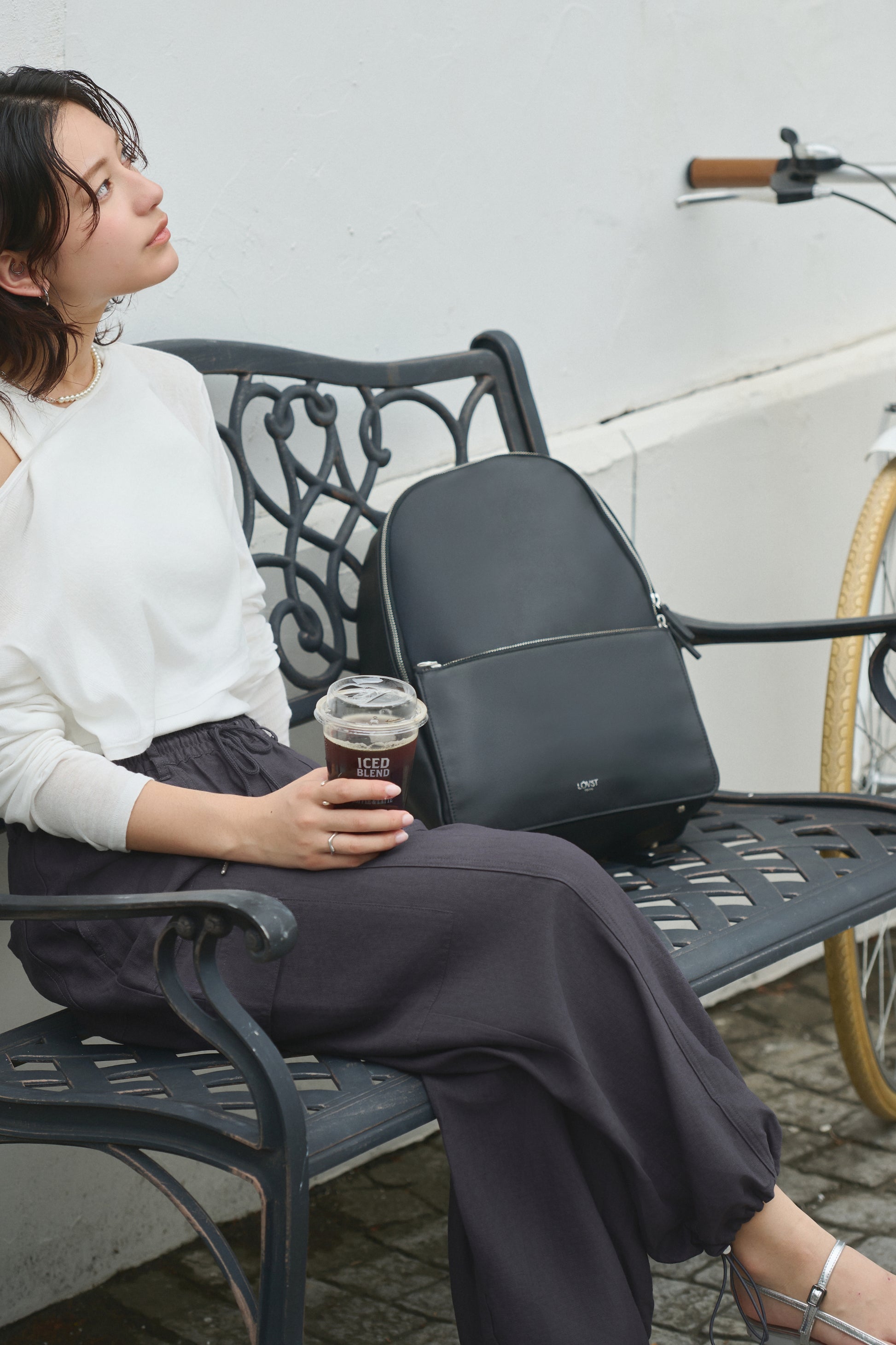 「リュックを持つならキレイめに見せたいけど、ランニングアイテムも入れるなら容量も欲しい…」という私の理想が叶いました。汚れや水に強いアップルレザーだからこそ、天候やシーンを気にせず思いっきり使えるところが嬉しいです!