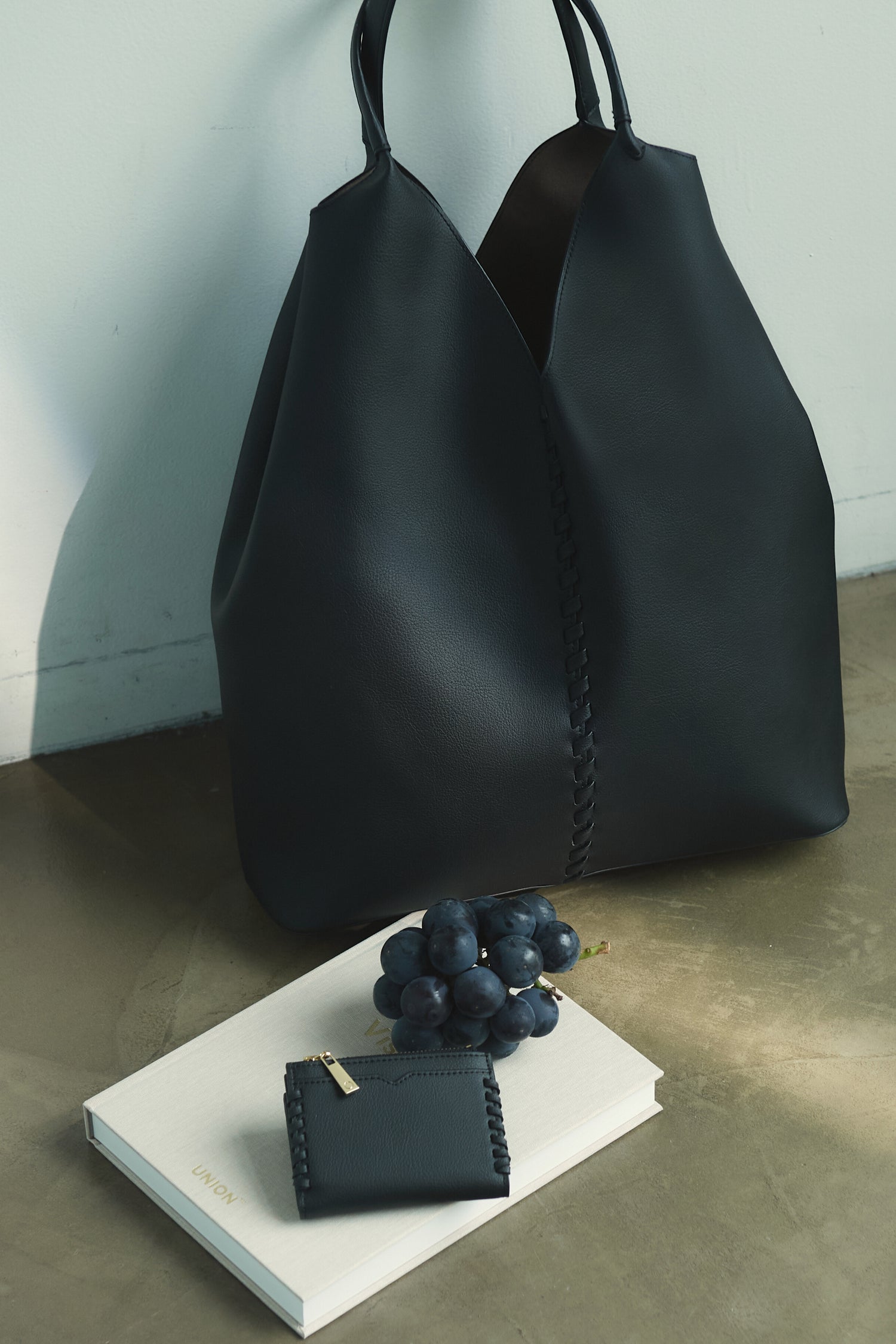 「Grape Vine Tote Bag」から引き継いだぶどうの蔓をイメージしたかがり縫いのデザインが特徴。